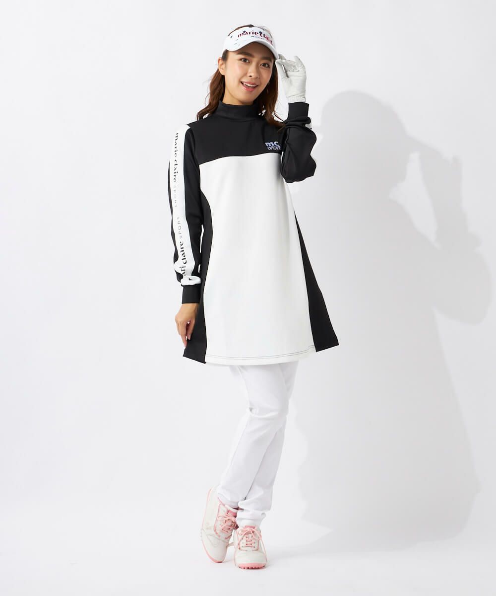 モノトーンの配色切り替えデザインがスポーティなワンピースです。ベルトループ付きでお手持ちのベルトを合わせてウエストマークしたり、ボールポーチを下げたりすることができます。