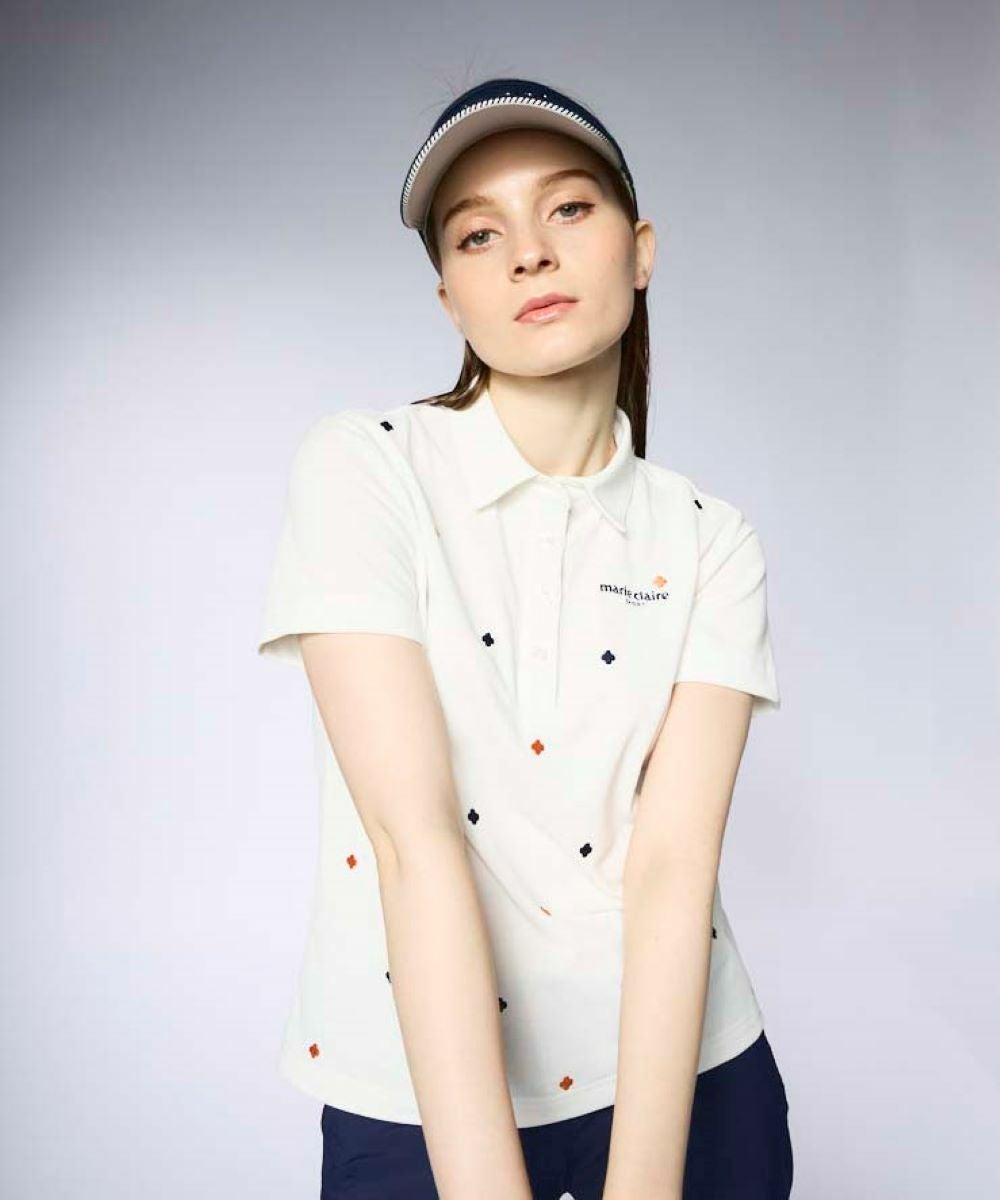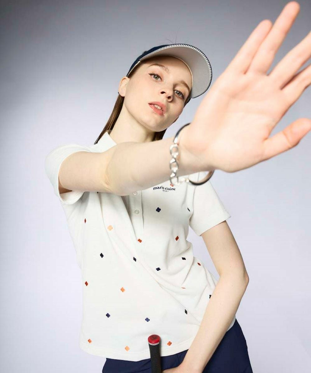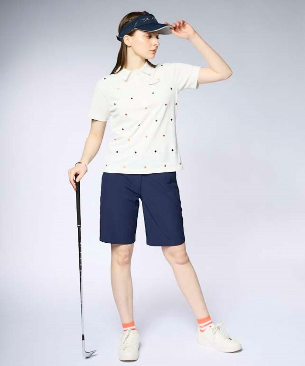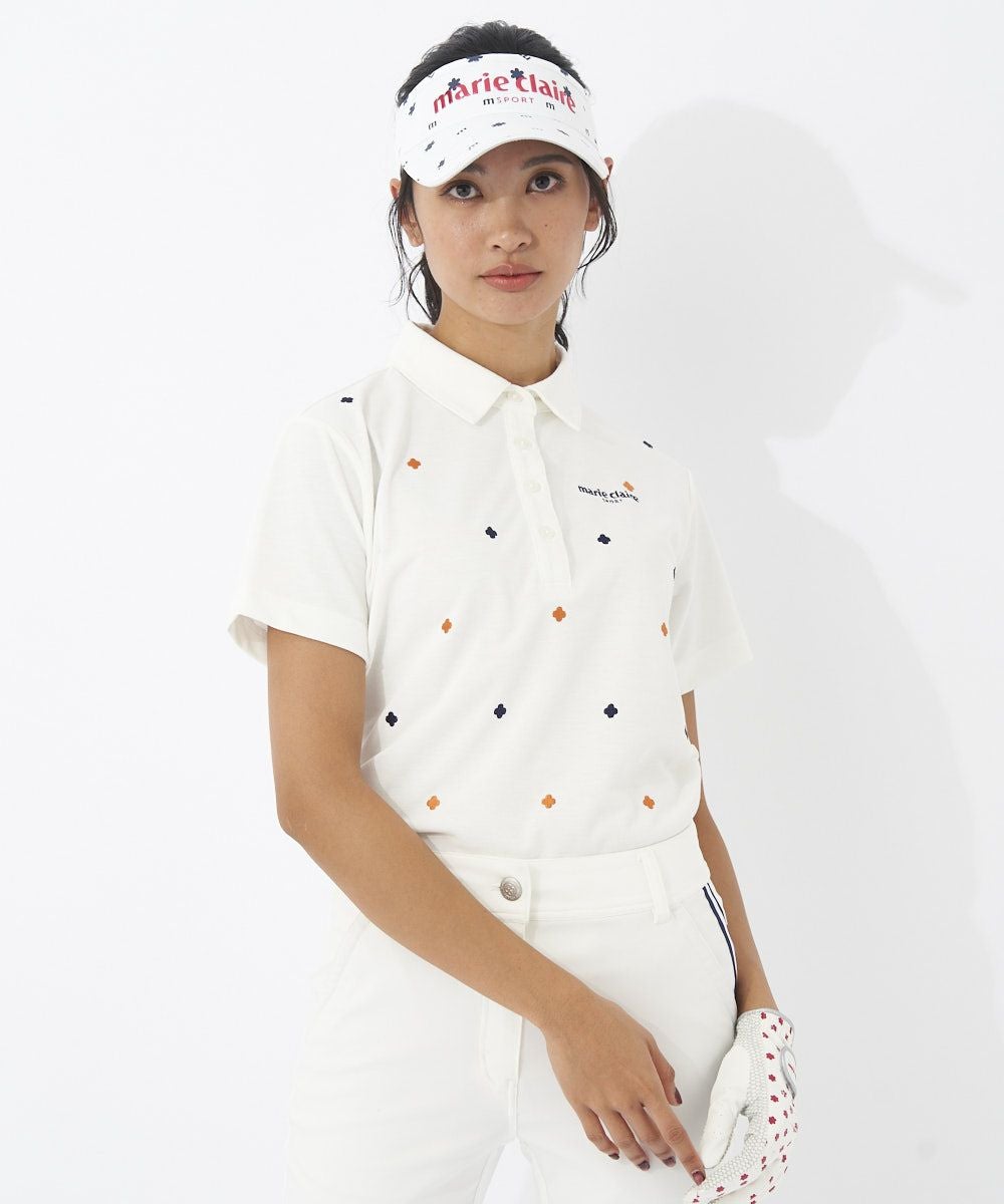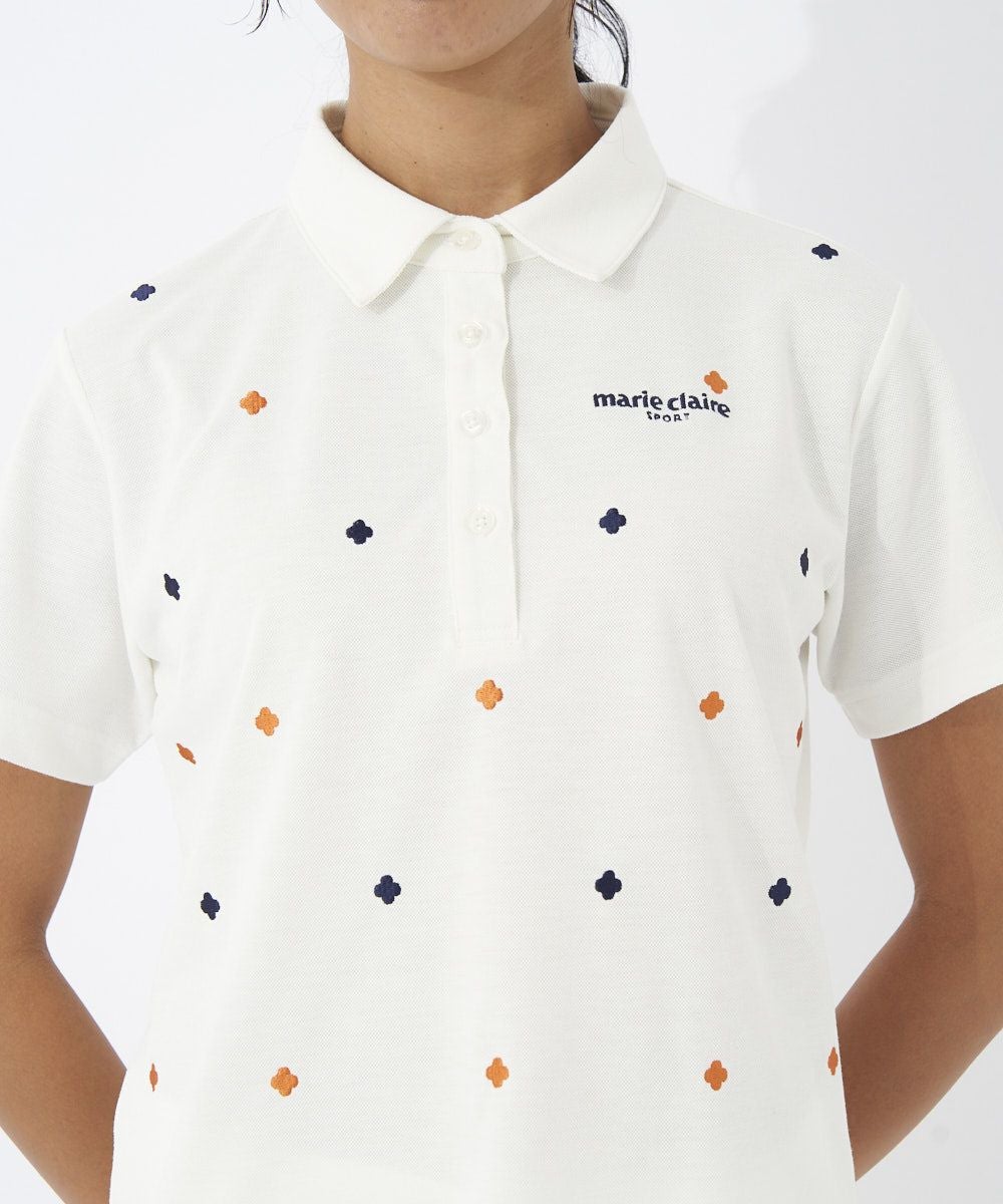 レディース 刺しゅう飛び柄半袖シャツ|吸汗速乾/ストレッチ/UVカット