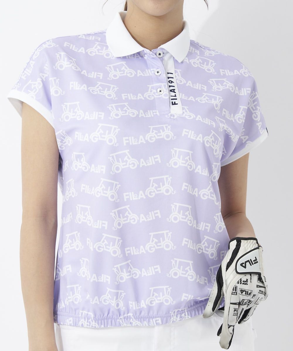 カートをモチーフに使用したポップなプリント柄の半袖シャツ。肌あたりの良いアームホール切替のない、フレンチスリーブタイプ。裾口は、アウトにしてもスマートにキマる、ゴムシャーリング仕様。