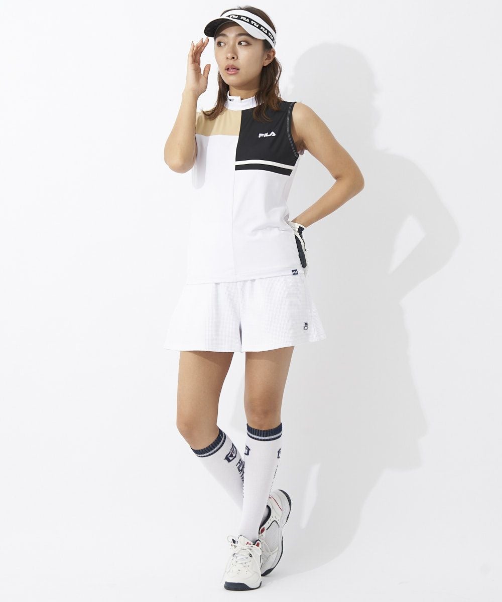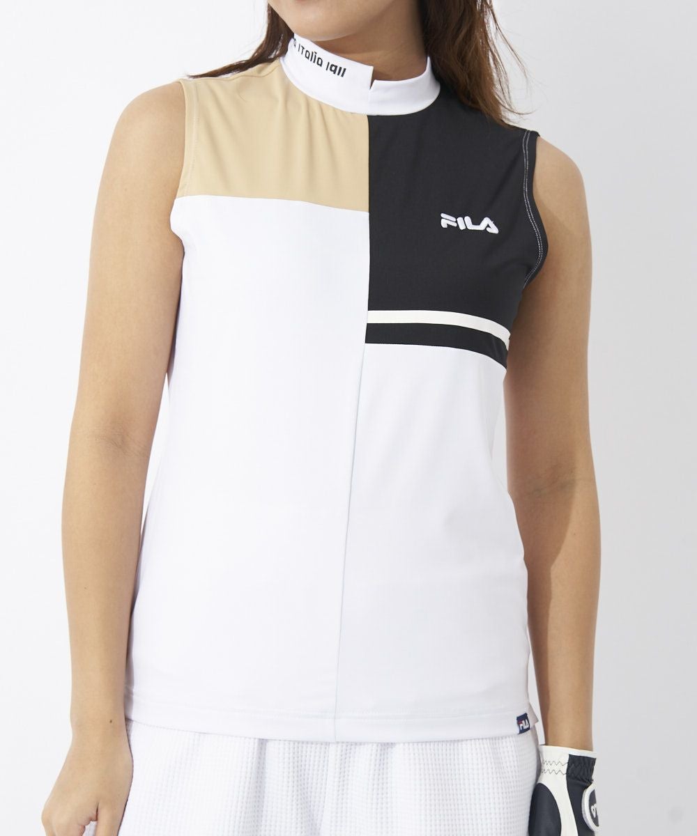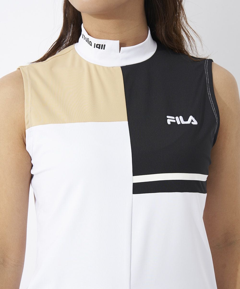 FILAらしいブロック切替を表現したノースリーブモックネックシャツです。