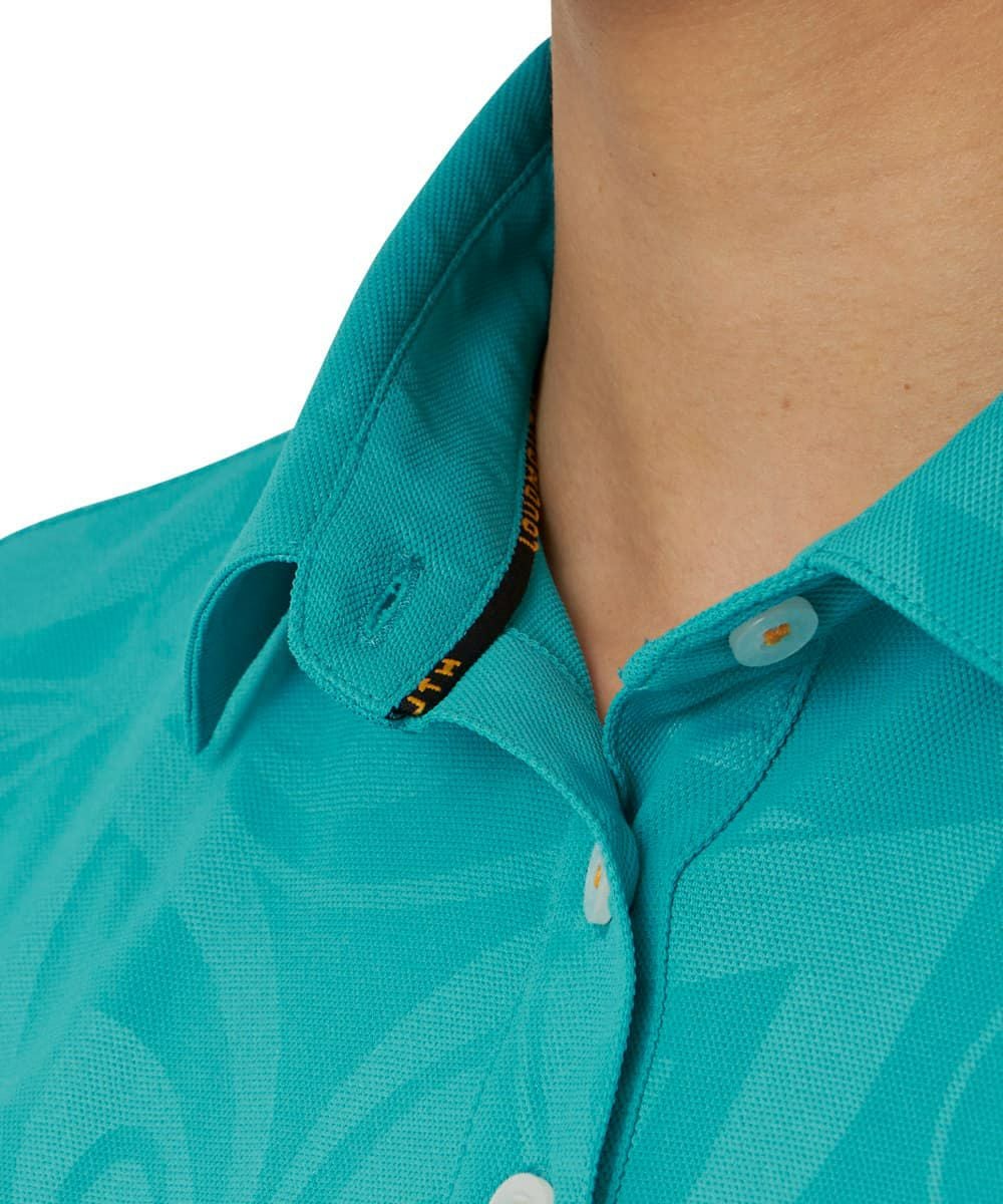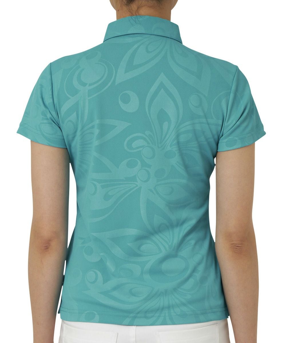 レディース 半袖ポロシャツ エンボス ターコイズ 吸汗速乾 UV