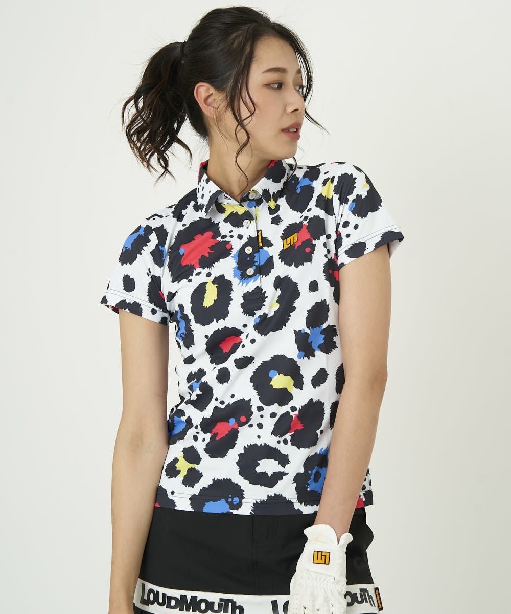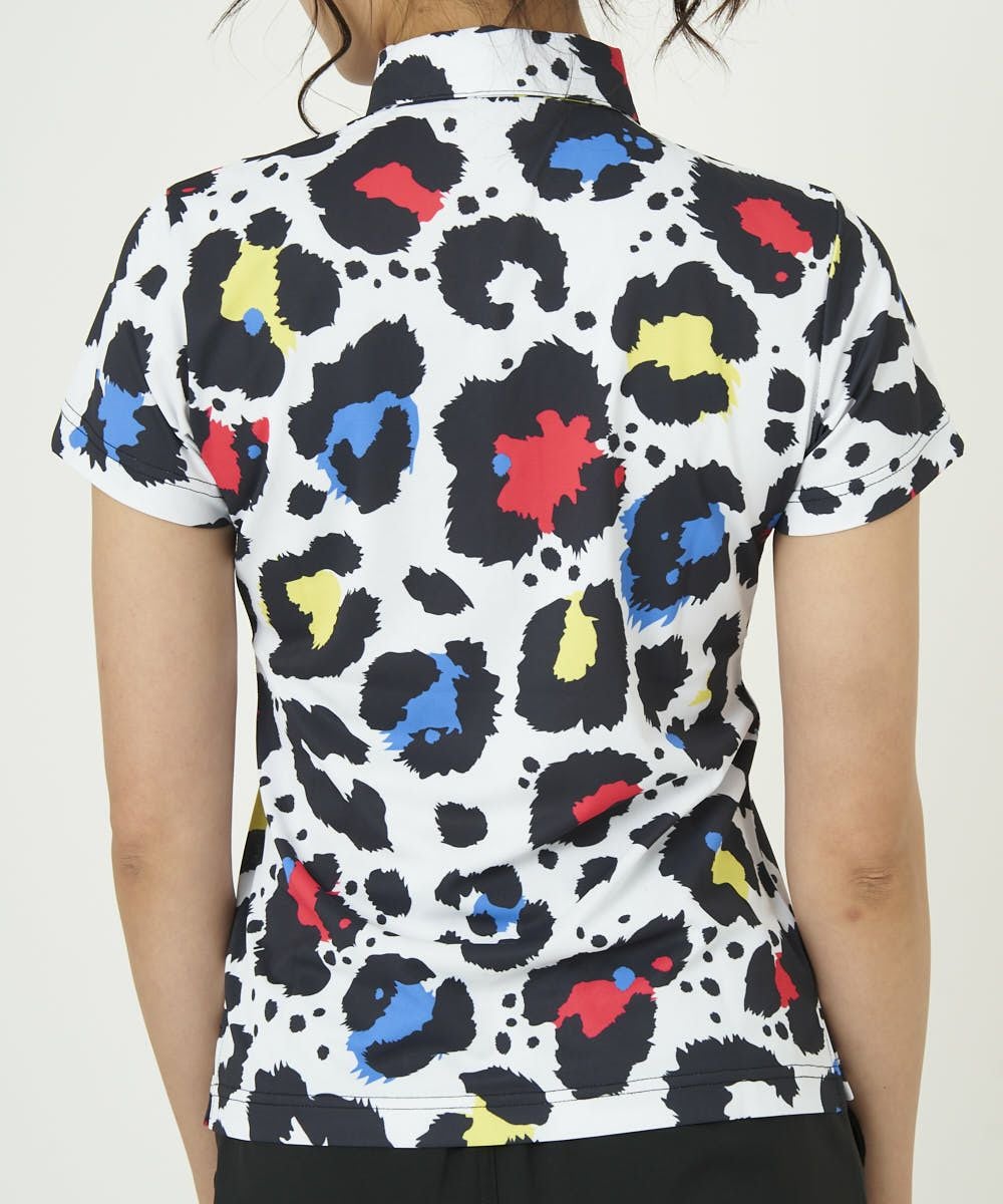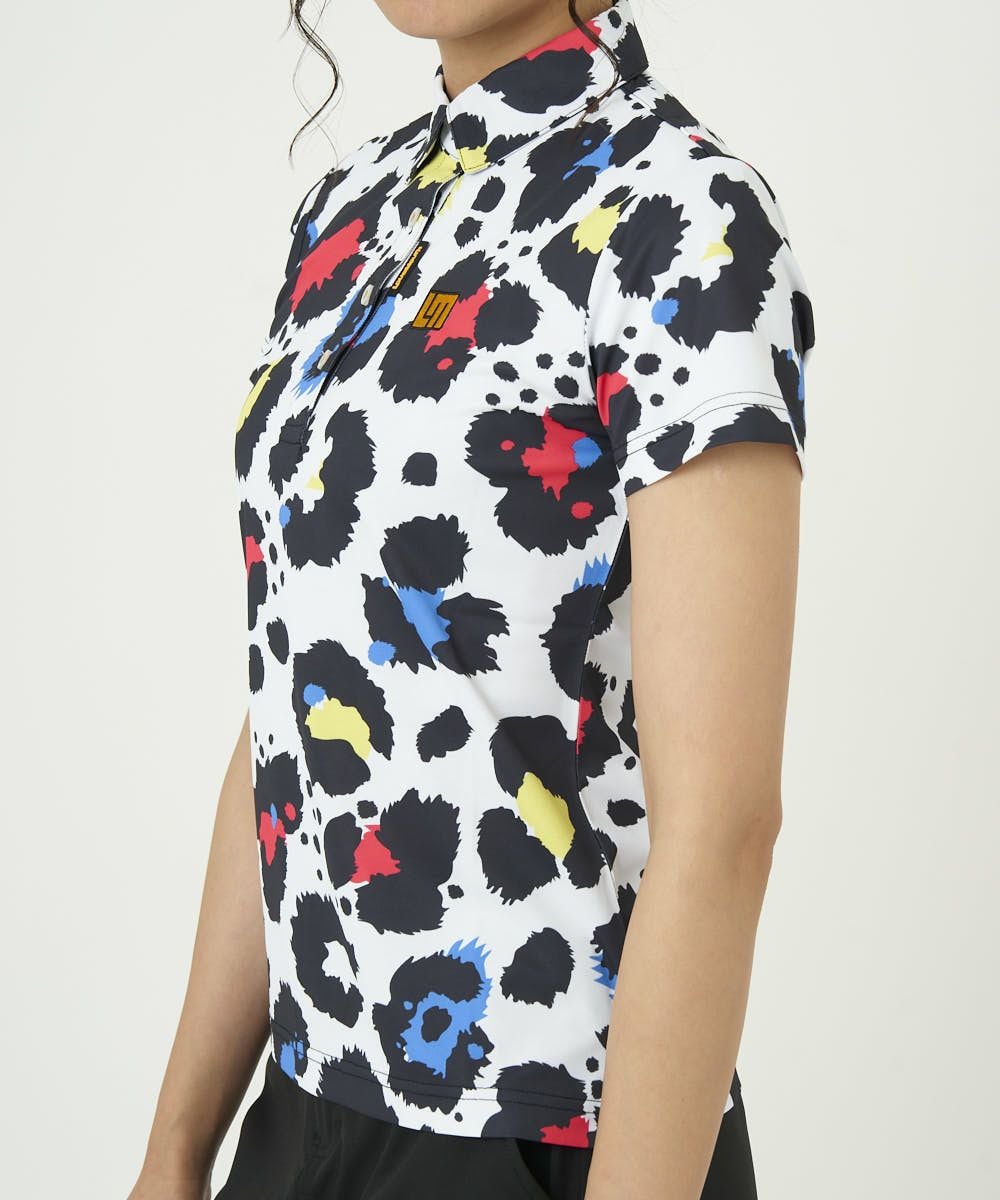 レディース 半袖ポロシャツ プレミアムカノコ素材 ネオンレオパード 吸汗速乾/UV/接触冷感