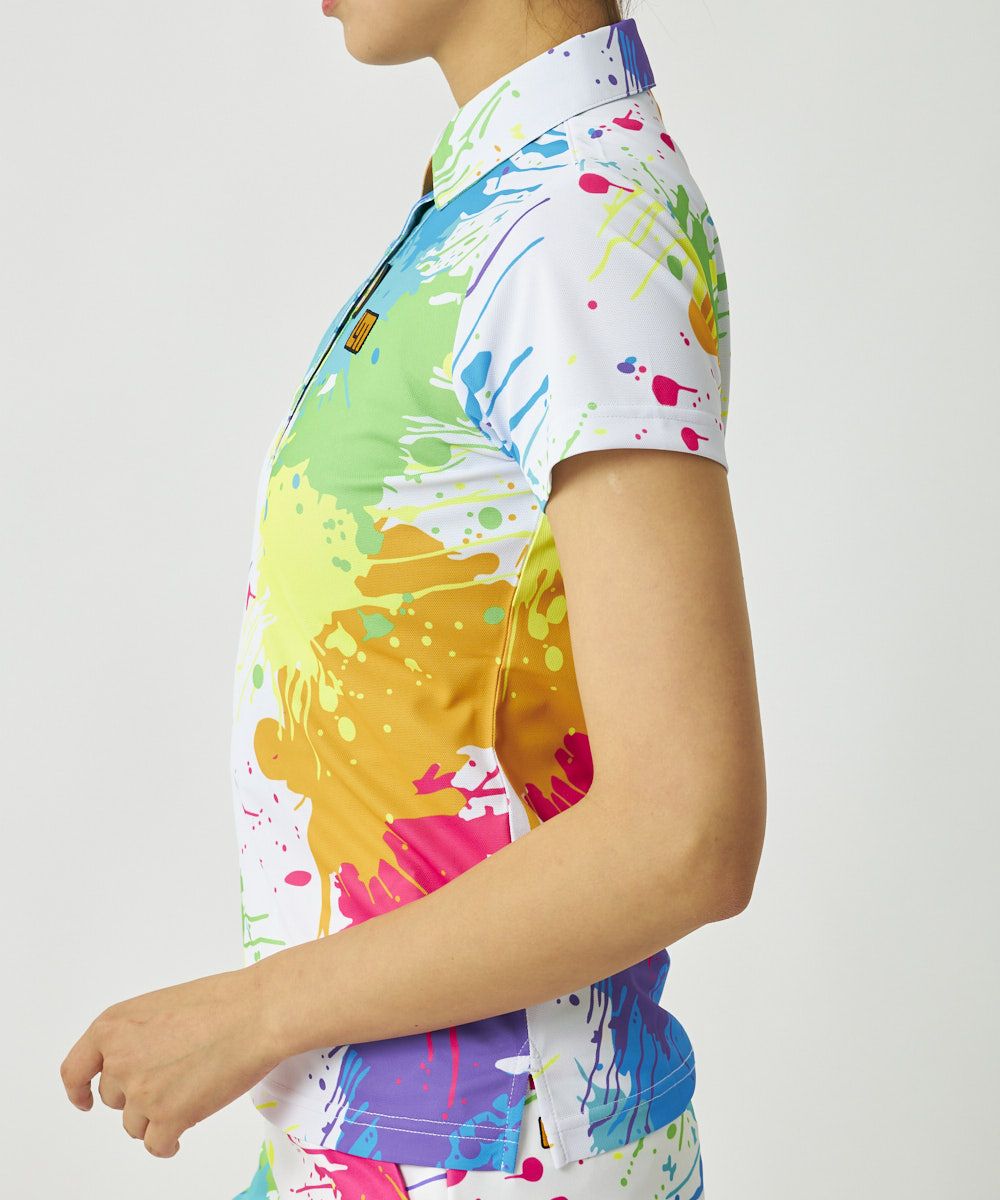レディース プレミアムカノコ 柄半袖シャツ Drop Cloth Neon/ドロップクロスネオン
