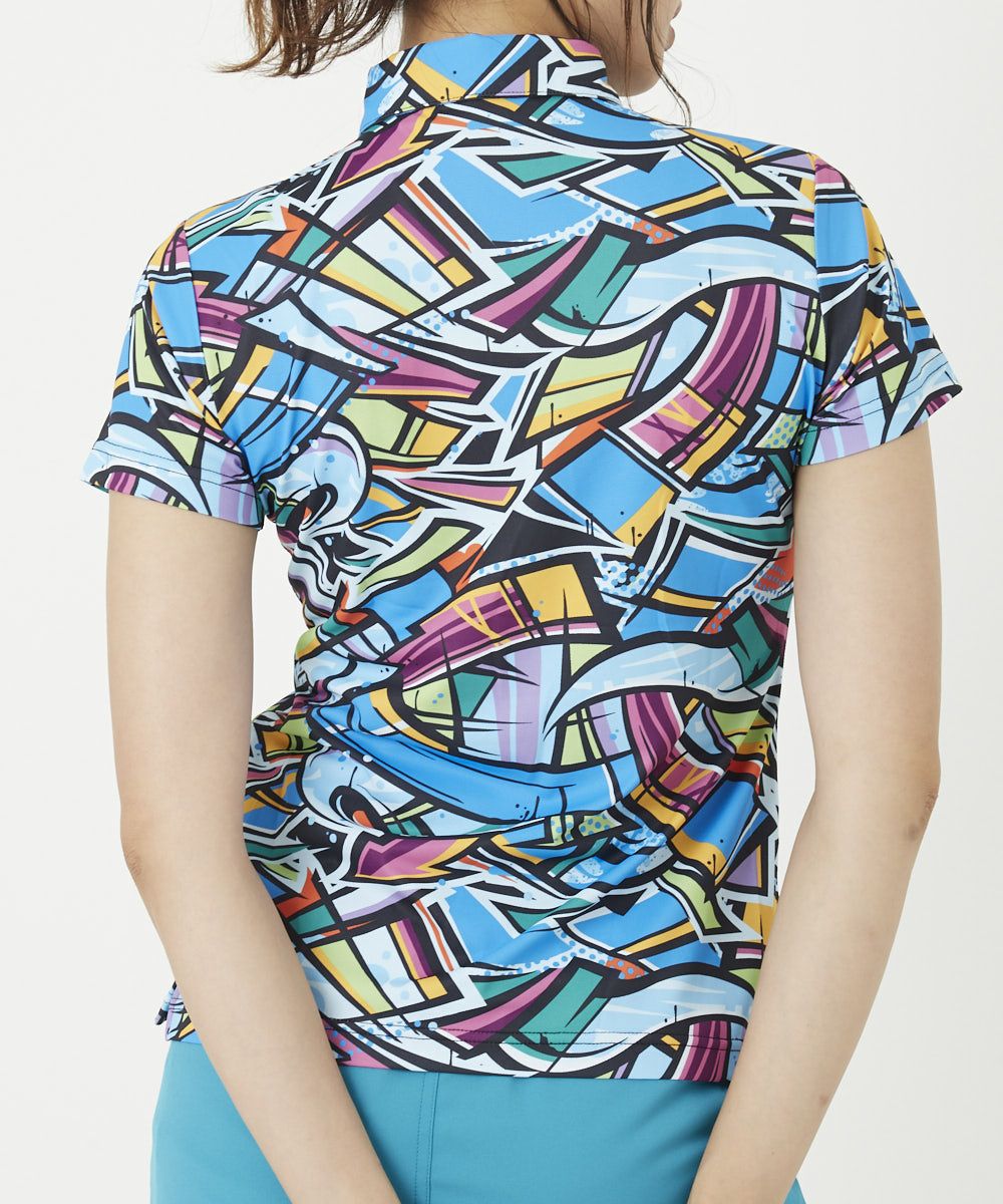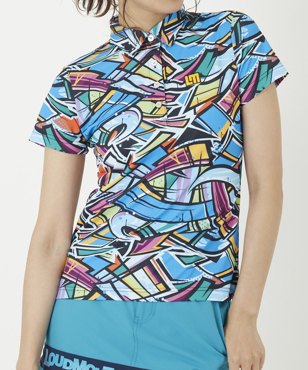 レディース 半袖ポロシャツ ウォールアート 吸汗速乾 UV