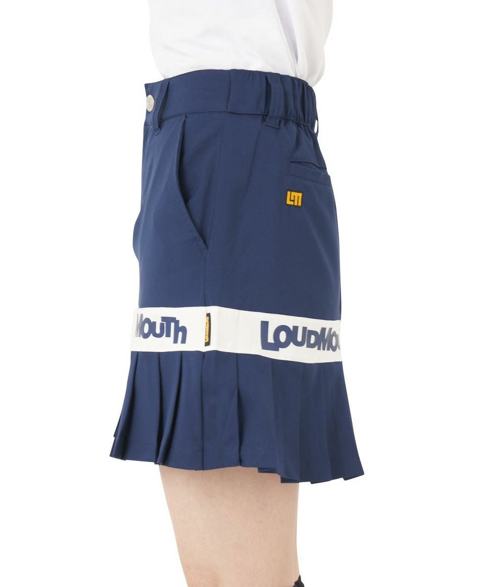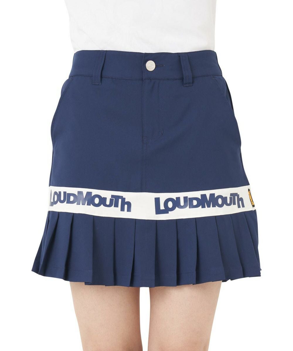4Wayストレッチ素材のプリーツスカート。裾がプリーツと切り替え部分に LOUDMOUTHのプリントロゴ入り。一枚でインパクトのある女性らしいアイテムです。