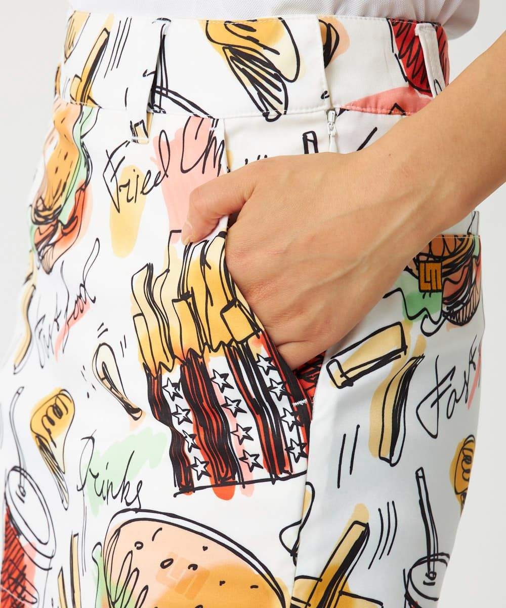 動きやすいポリエステルツイル素材を使用した柄スカート。今シーズンのインパクトのある7柄を展開。