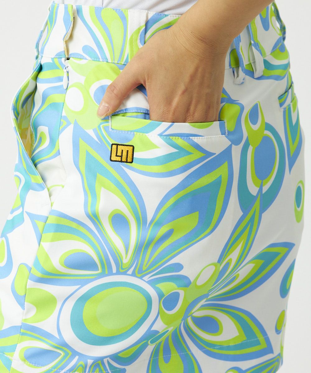 動きやすいポリエステルツイル素材を使用した柄スカート。LOUDMOUTHの代表柄シャガデリックの3色展開。