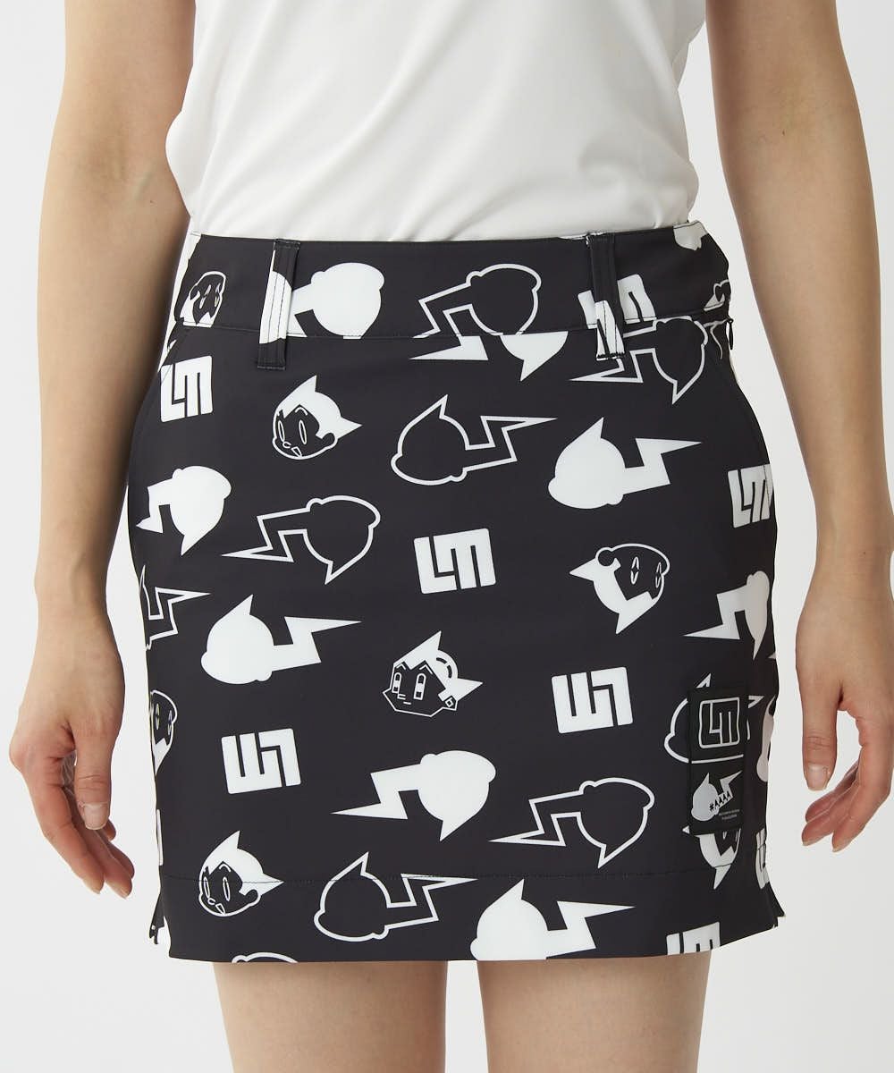 エコに配慮した動きやすいリサイクル布帛素材を使用したスカート。ワントーンのLMロゴと#AAAAアトムイラストをMIXさせたコラボ限定アイテムです。コラボ限定のダブルネームが入ったレピアネーム付き。