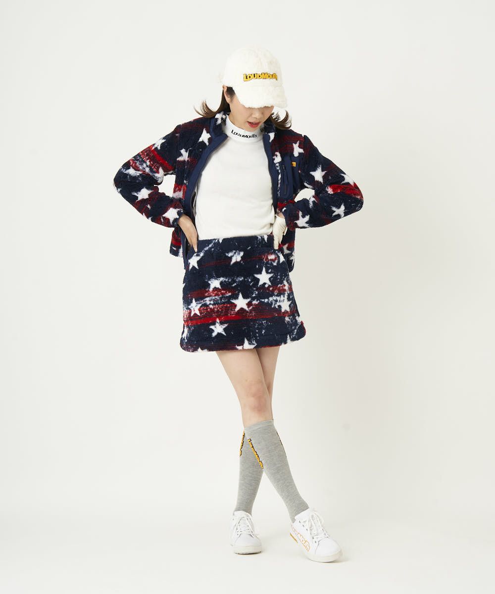 裏フリースボア素材の保温性抜群のスカート。ラウドマウスらしいインパクトのある柄で展開。