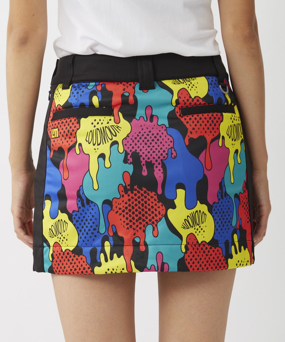 ストレッチ性のあるカットソー素材と裏フリース。 素材にフィルム加工を施した3層ボンディング素材を使用したスカートは、今シーズンのインパクトのある柄の3カラー展開です。