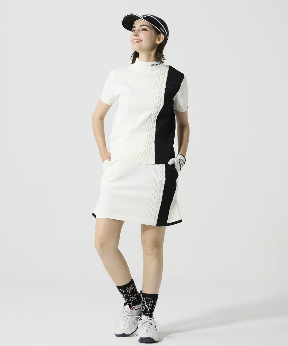 細見えするバイカラー切替が特徴的なニットスカート。後裾にフレアを取りいれ、甘すぎない大人かわいいシ ルエットです。同素材のニットトップスとのセットアップコーデがおすすめ。トップスを変えれば真冬以外は長く使えるアイテムなので、季節をまたいで重宝するスカートです。