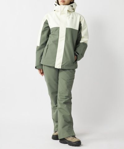 バイカラーな色切り替えデザインが魅力のレディーススノージャケット。耐水圧10000mlと透湿性5006gで蒸れにくく汗や湿気を効率的に排出し、快適性を確保。冬のアクティビティに最適。