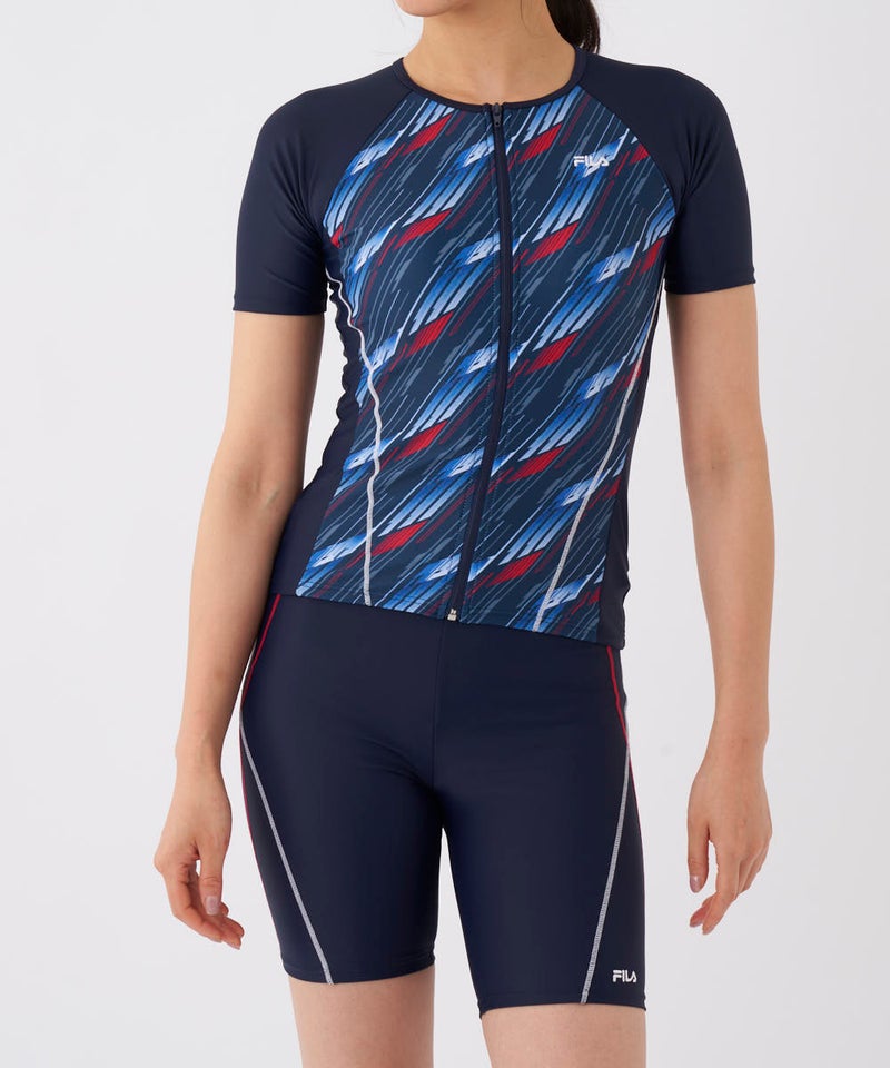 レディース幾何柄ZIP半袖セパレート