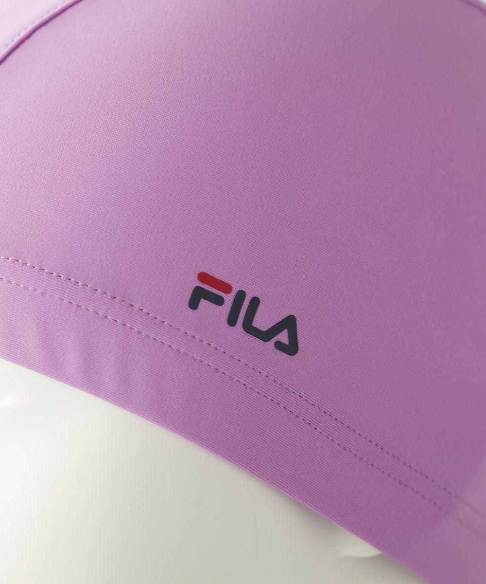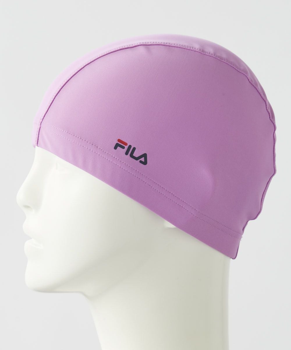 ベーシックテキスタイルスイムキャップ2way方向によく伸びる生地は水を通すのでムレません。頭周りは2 0mmのゴムが入っていてしっかり止まります。FILAのロゴプリント入りの無地キャップ。