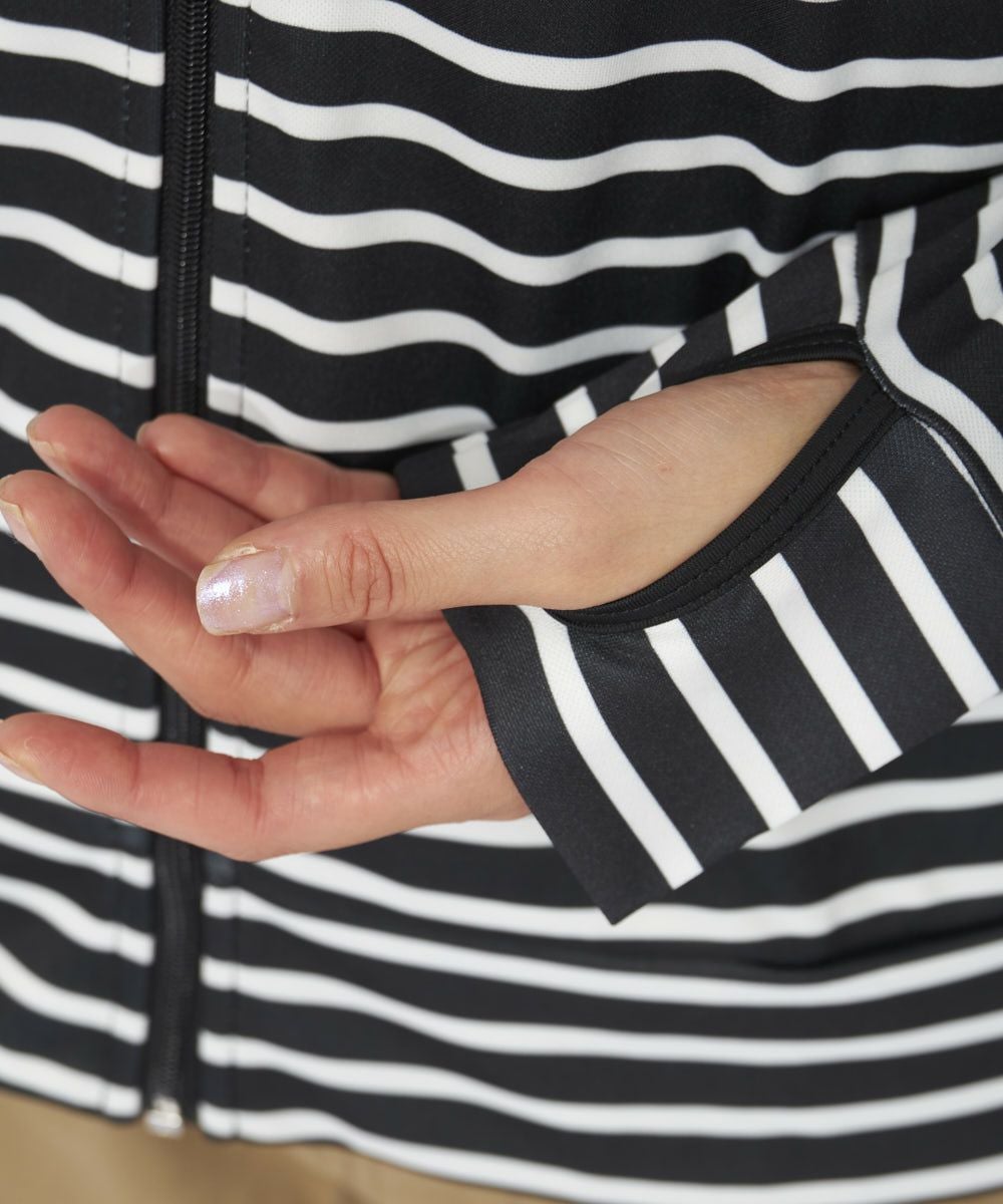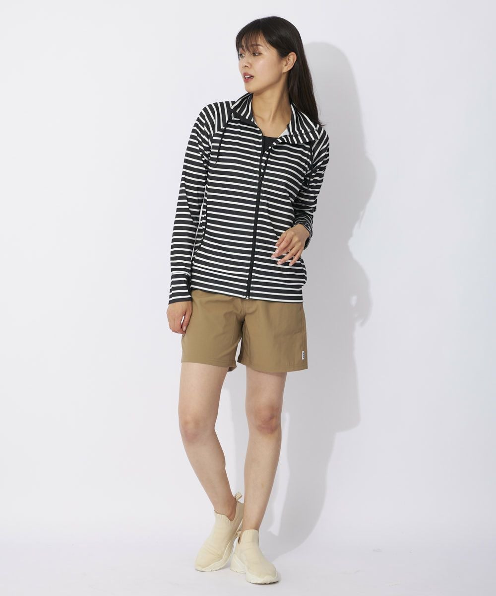 ラッシュ+タンキニ+ビキニパンツ+布帛生地パンツの4点セット。ラッシュはホワイト×色ボーダーなので真 夏でもさわやかなイメージです。UV遮蔽率90%以上で指穴も付いているので手の甲まで日焼け対策できるラ ッシュガードです。ポケット付きで便利な仕様に。セットパンツは布帛の生地なので軽量で持ち運びも最適です 。もちろん海やプールにそのままは入れる夏には最適なセット水着です。