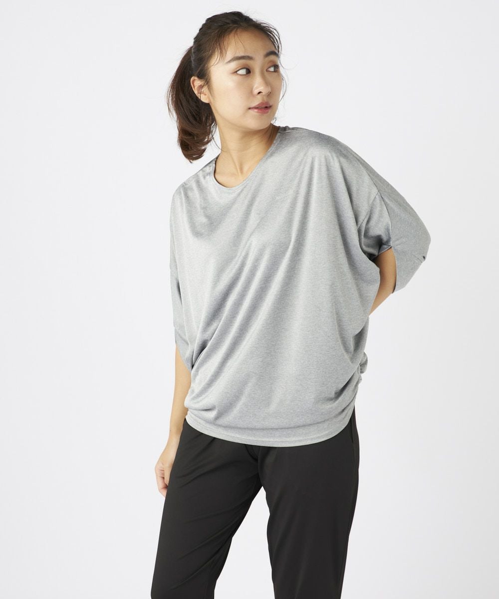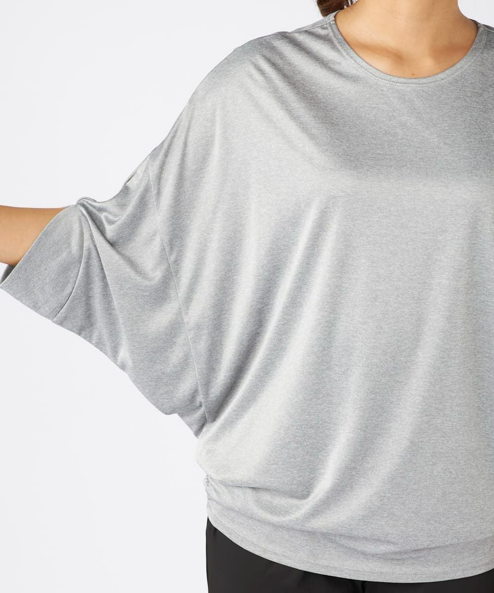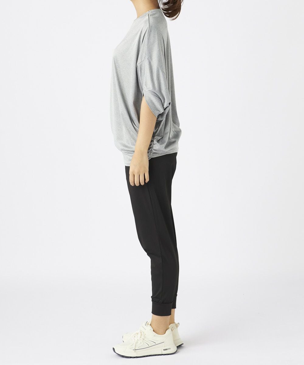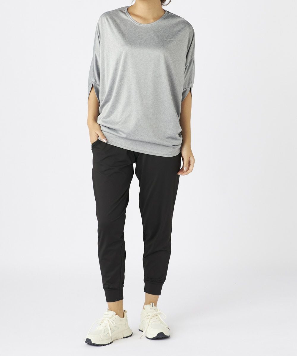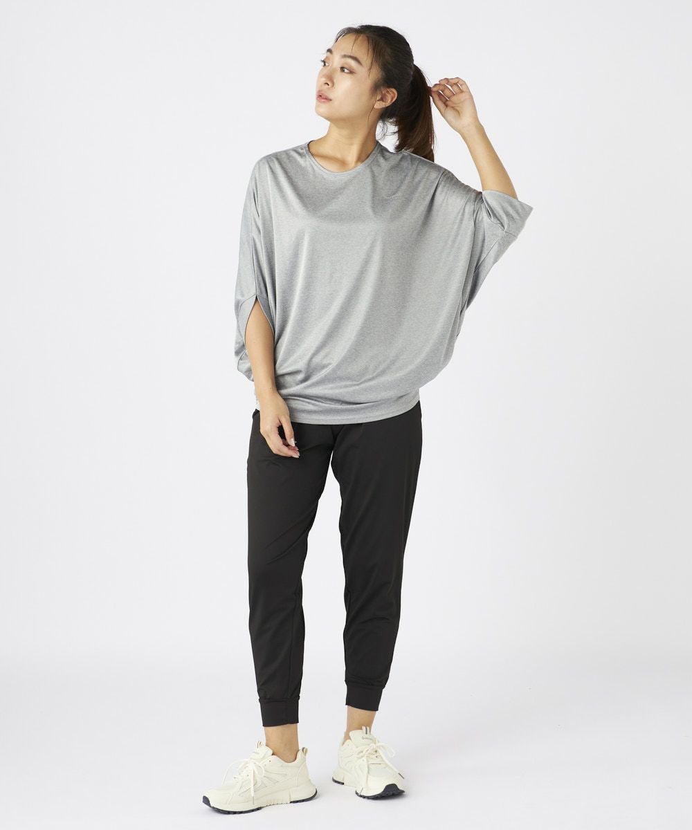 ドルマンスリーブのドレープ感が大人な女性を演出するおしゃれなフィットネスウェアセットアップ 。トップスは丈が長めでヒップをカバーできるので安心。ボトムにインして着てもかわいい袖が長め で二の腕もしっかりカバー。ボトムは緩めで動きやすく足先はゴム仕様でずれにくくこのセットがあ ればちょっとしたウォーキングからホットヨガやピラティスなどのスポーツまで着用可能で楽な着心 地のでホームウェアにもオススメです。
