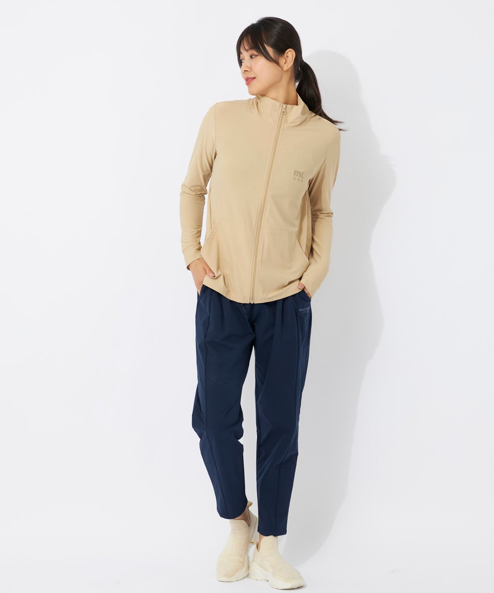 スポーツテイストのジャケット。 接触冷感素材を使用。適度なゆったり感、接触冷感のさらっとした触りこご ちで、着心地抜群。marie claireのブランドロゴが、普段使いにもスポーツシーンにも汎用性の高 いアイテム。