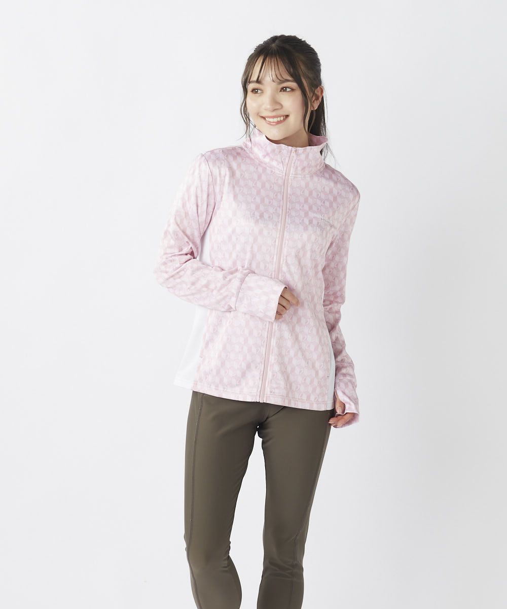 脇の切り替えがシルエットをすっきりと見せてくれる長袖のUVジャケット。衿も高めの設定なので気になる首 元の紫外線もしっかり対策してくれます。パリから届いたオシャレな総柄はトーンカラーなので派手過ぎず、羽 織るとコーディネートのポイントになること間違いなし。