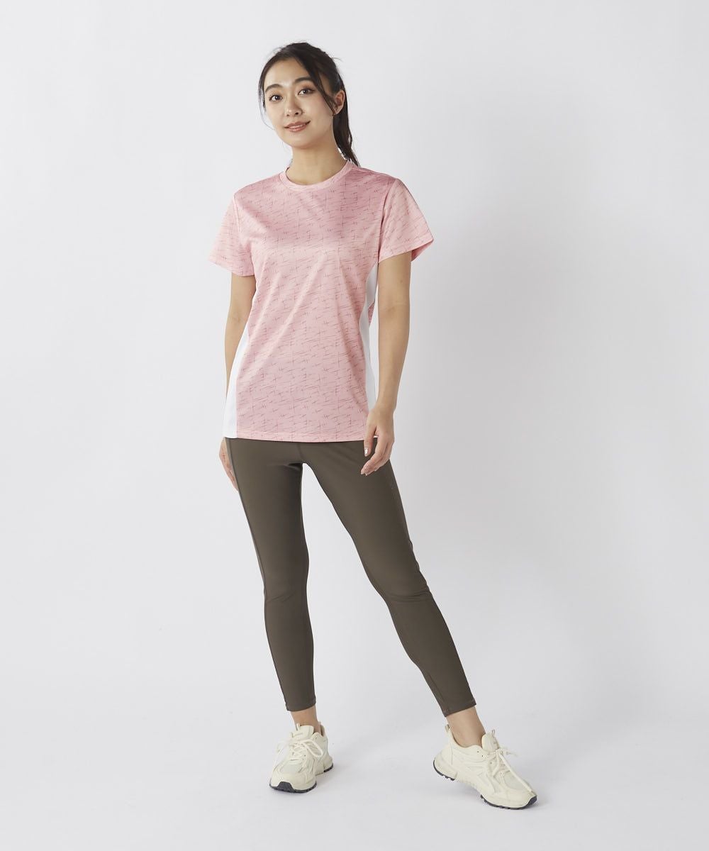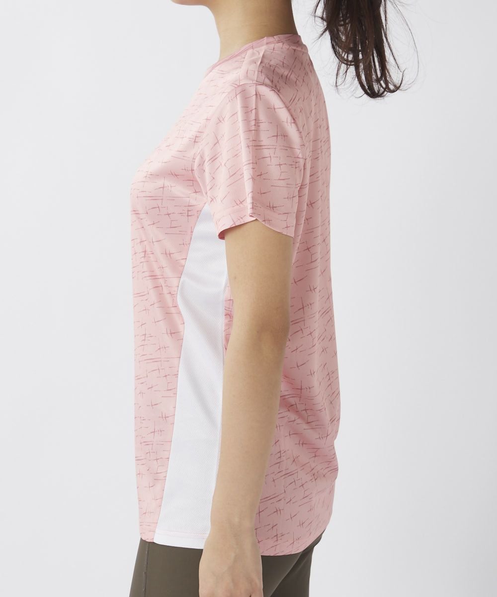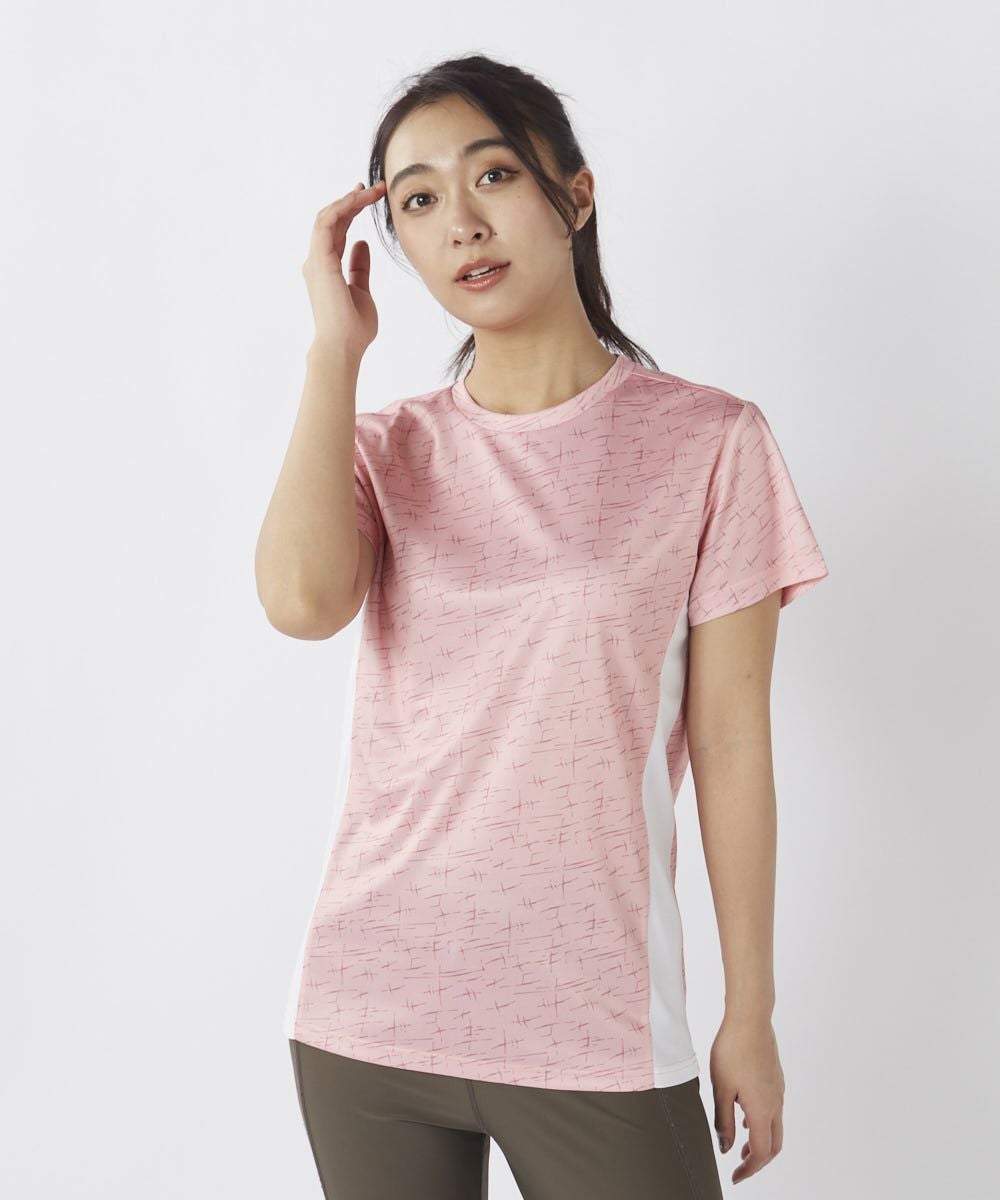 サイドは無地の切り替えですっきりと細見え効果のあるTシャツです。