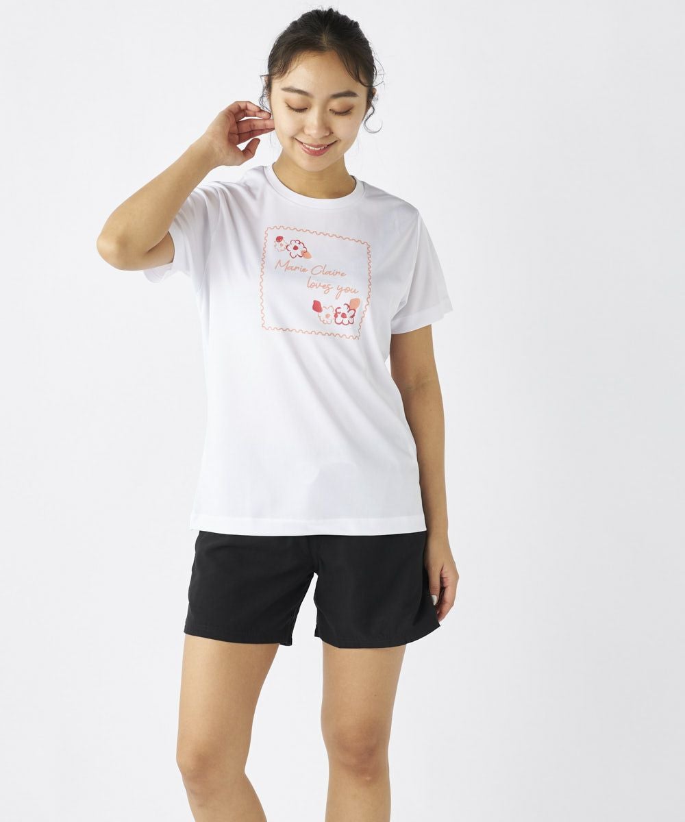 お花のグラフィックがおしゃれな半袖Tシャツ。スポーツシーンはもちろん、デニムなどのカジュアルスタイルにも相性の良いTシャツです。