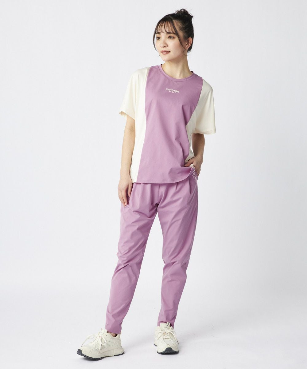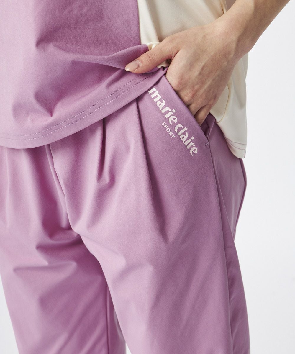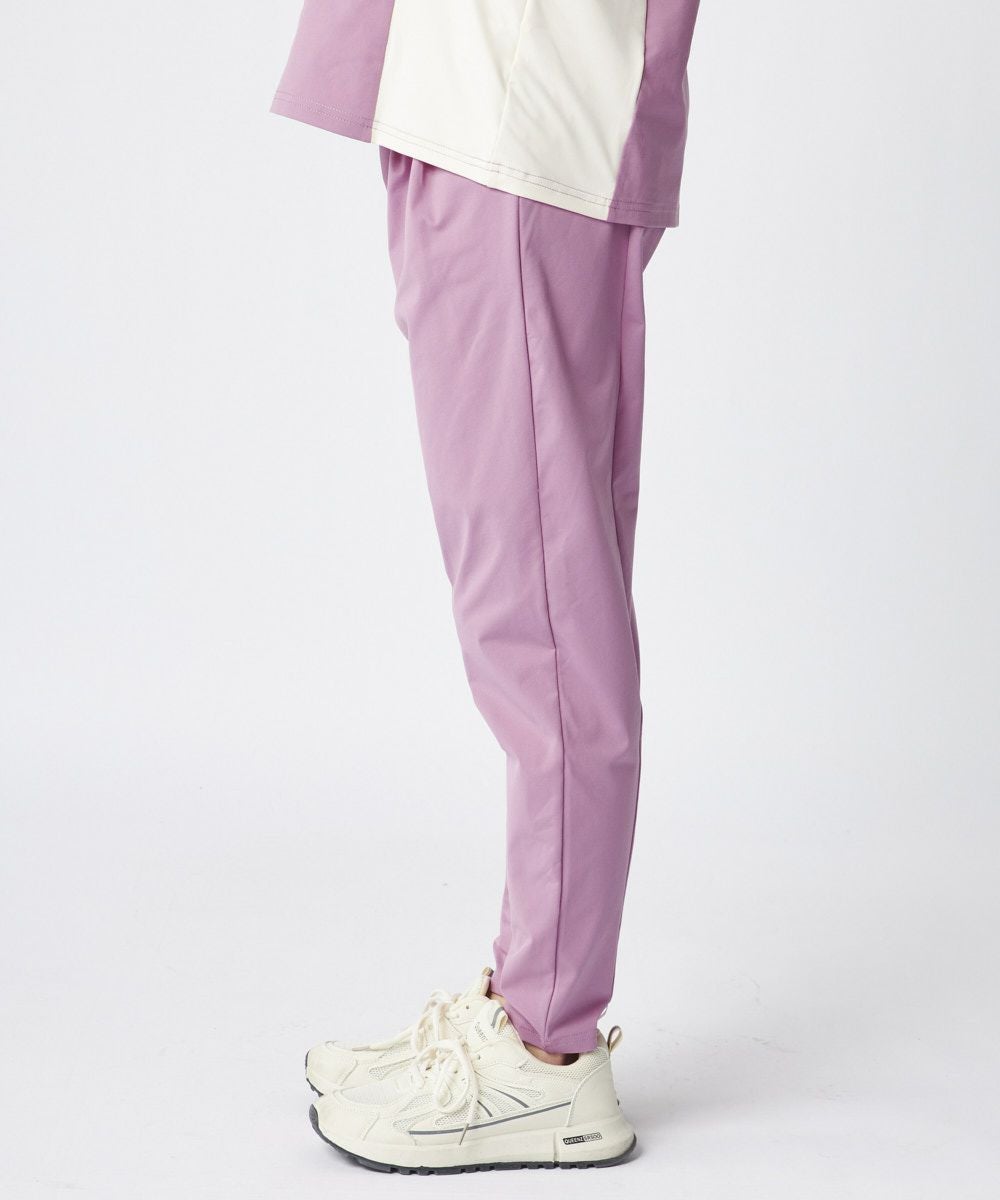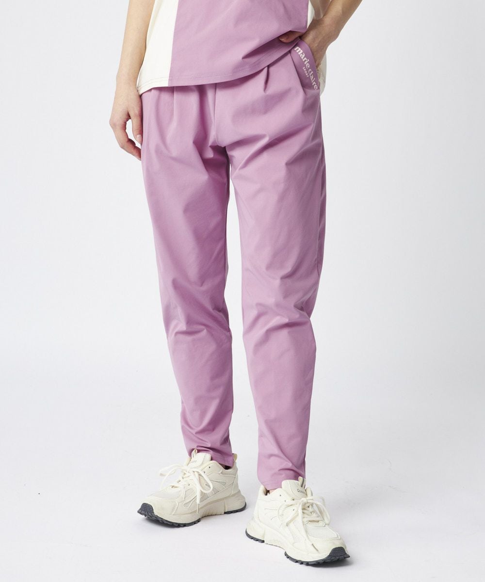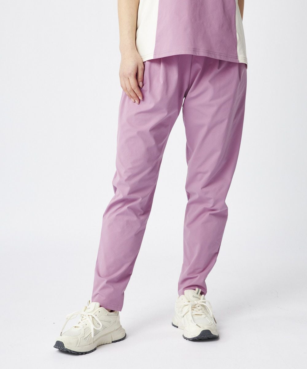 タックが入ったデザインで、足首のかけて補足すっきりと見えるデザインのロングパンツ。ウエスト周りはスッキリと見えるデザインに。同素材のTシャツと合わせたコーディネートもおすすめです。