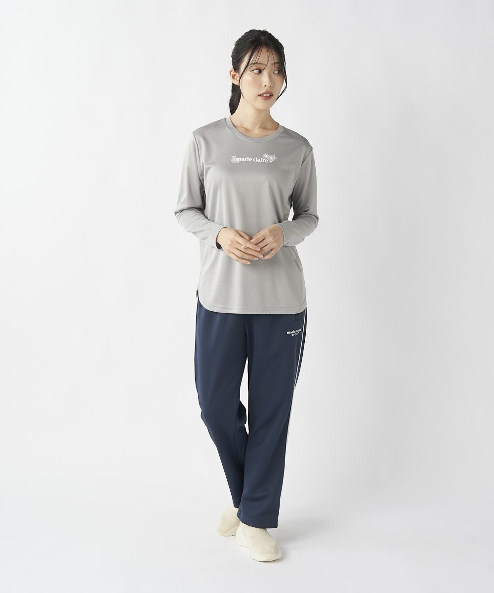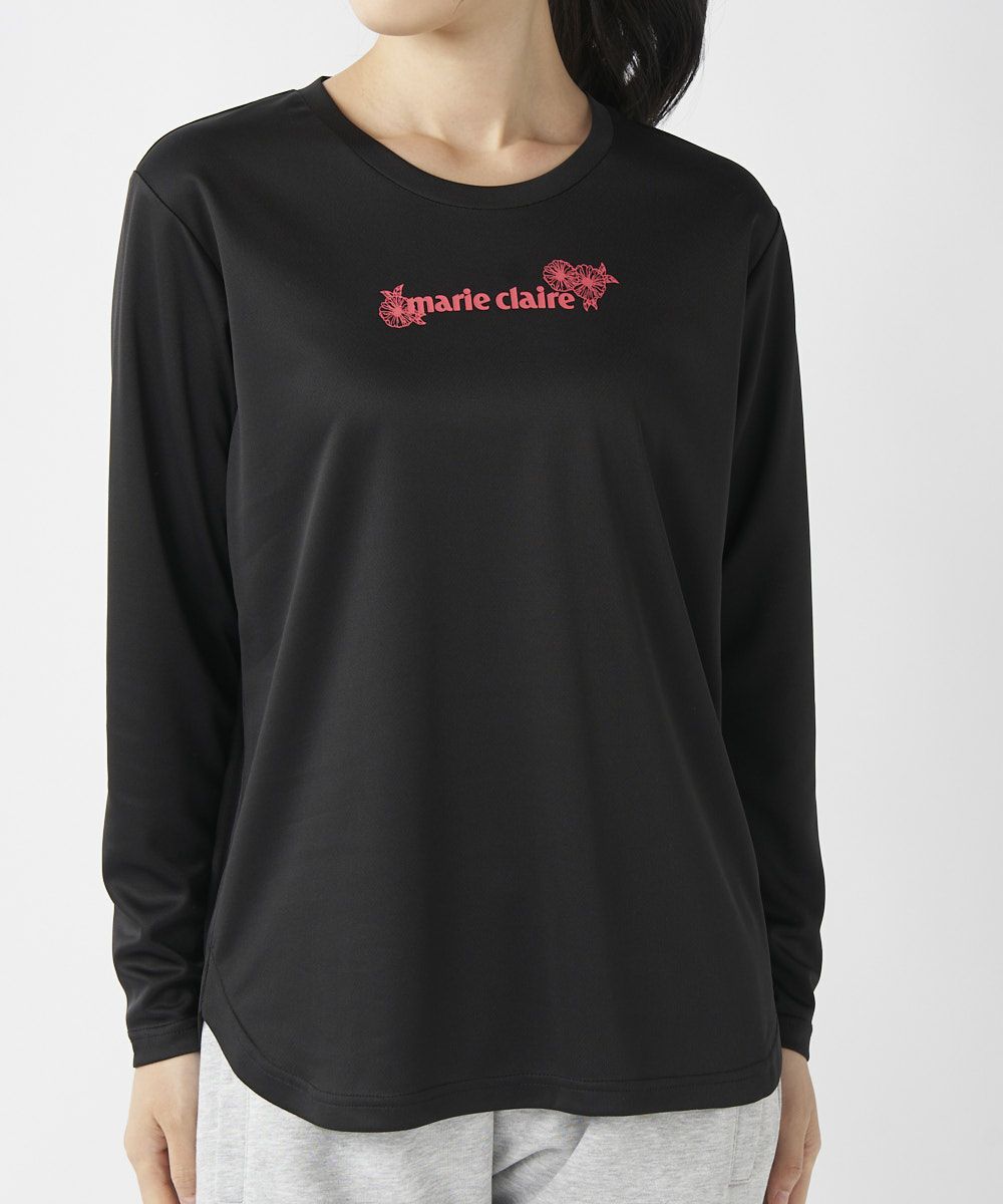 レディース メッシュ微起毛グラフィックロゴ長袖Tシャツ