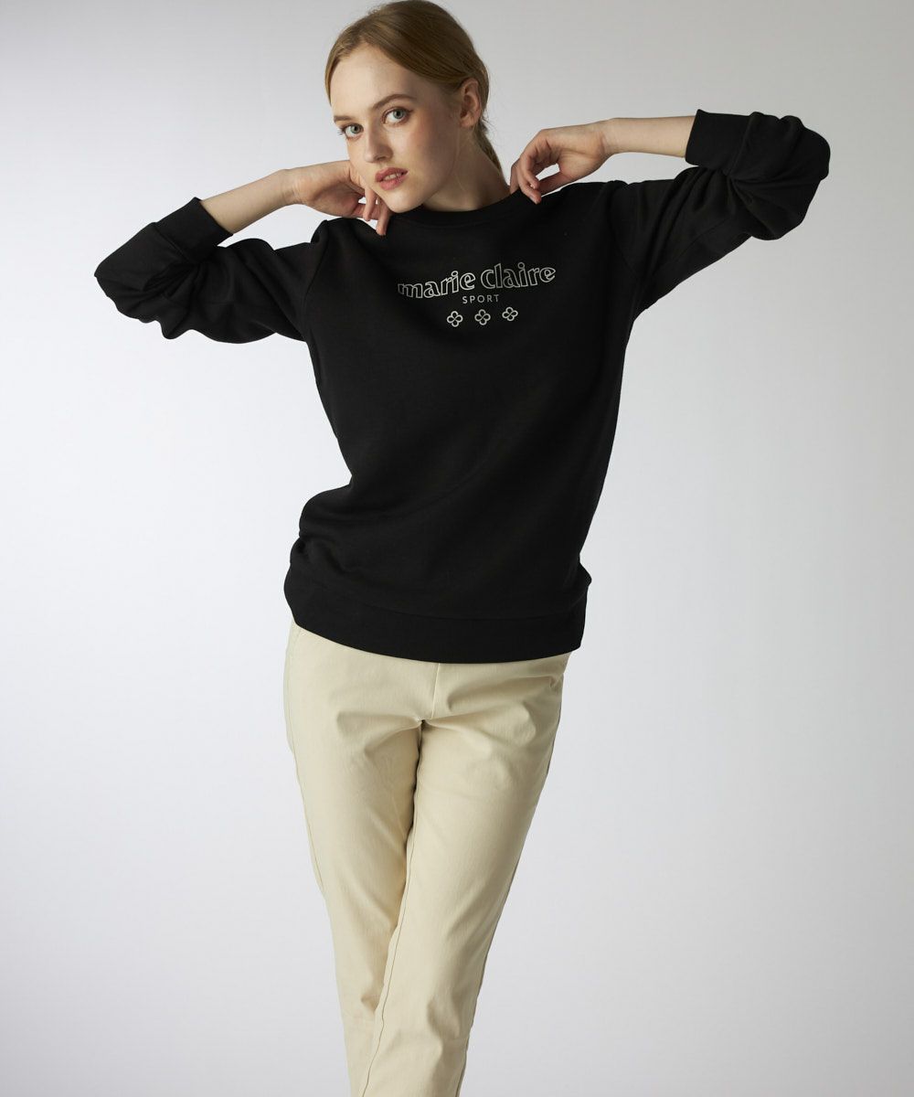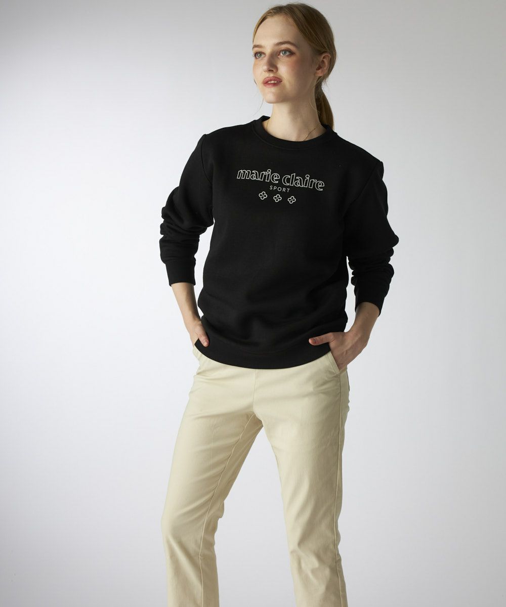 シンプルな無地スウェットに、マリ・クレールのモチーフとロゴを正面に施したデザイン。ロゴの配色もオシャレです。