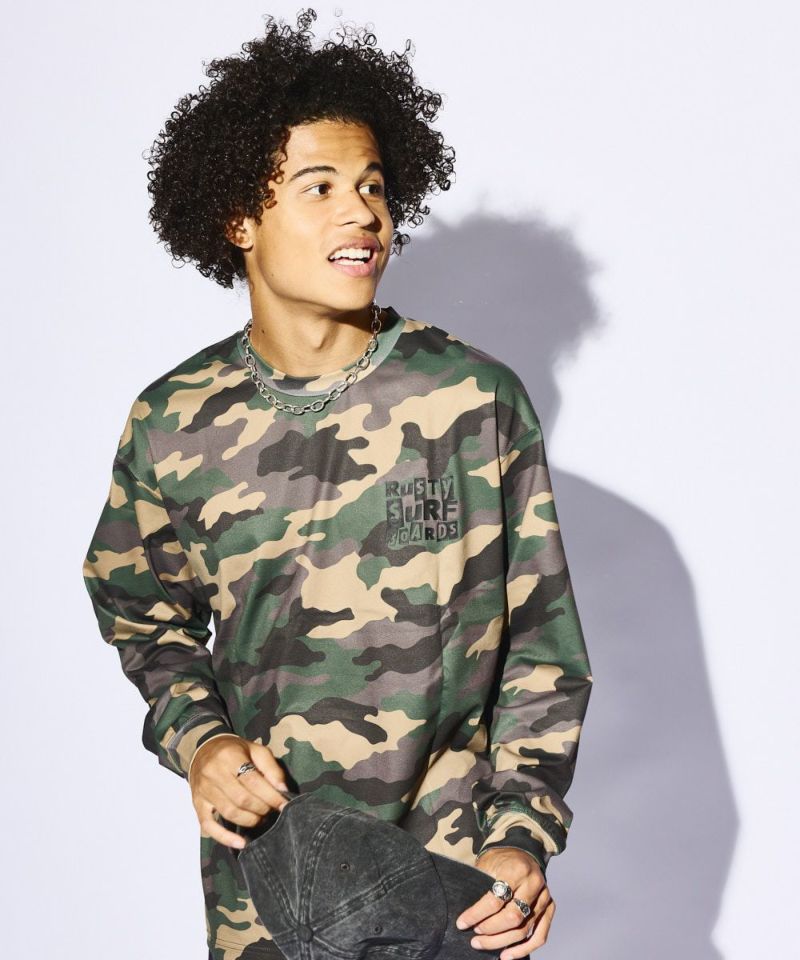 アウターの中に着ると迷彩色がアクセントになります。 生地は厚くはなく、ラッシュガードの様な伸縮性は無いです。 早く乾く、シワになりにくい
