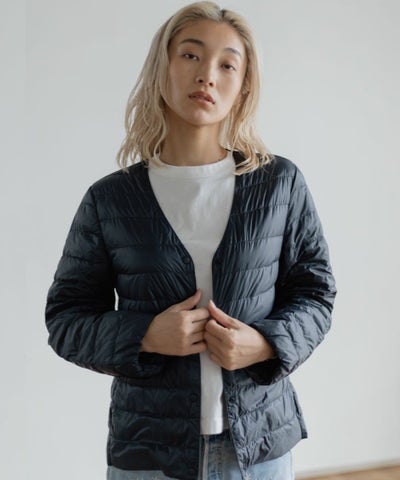 薄くて軽くて使いやすそうです。ただインナーダウンだけあってタイトな作りなので普段通りのLサイズだと少し窮屈でした。XLの方が体の可動域が無理無く良かったかもしれません。袖丈はLでぴったりでした。165センチ普通体型です。
