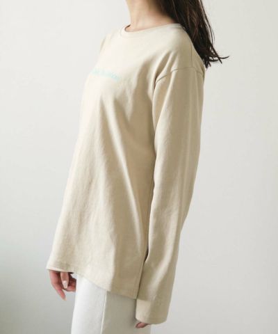 安定のベージュ色のロンTです。胸のロゴもグリーンでかわいいです。ちょっと触った感じ硬いので好みが分かれそうです -