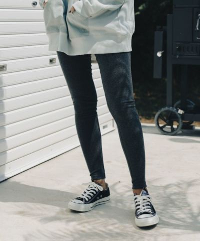 厚手でしっかりしています。秋冬に活躍しそう。ウェストも苦しくなく長さも十分あるので165センチの私でも短いということはありません。 -