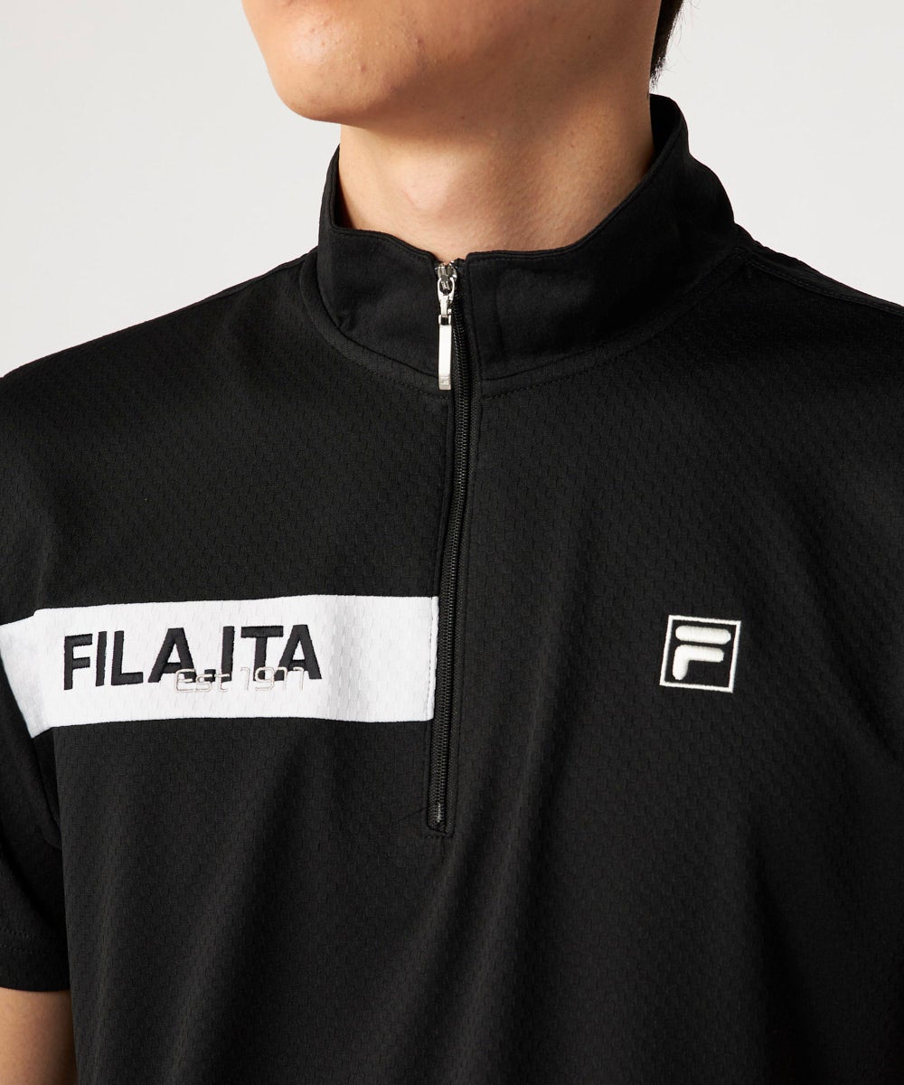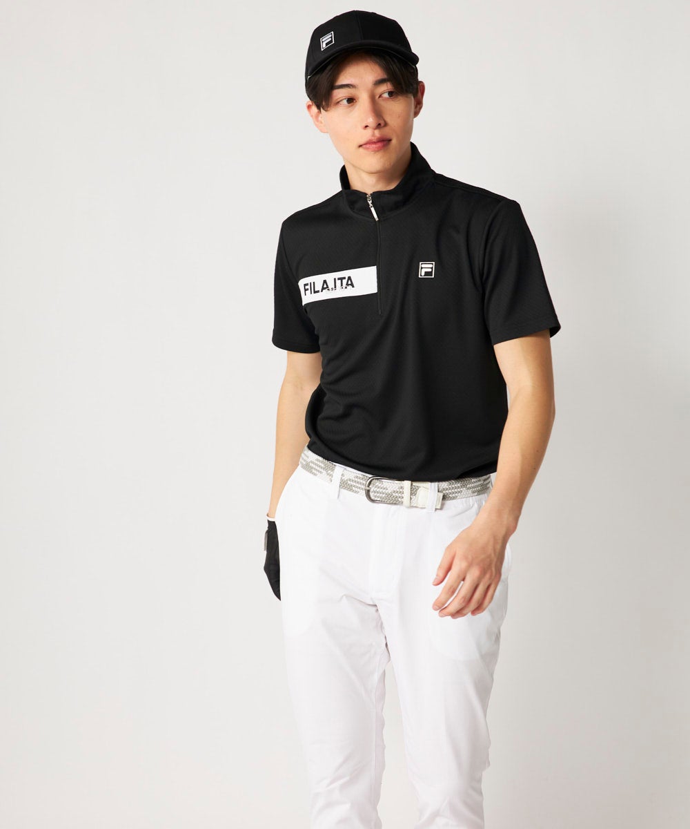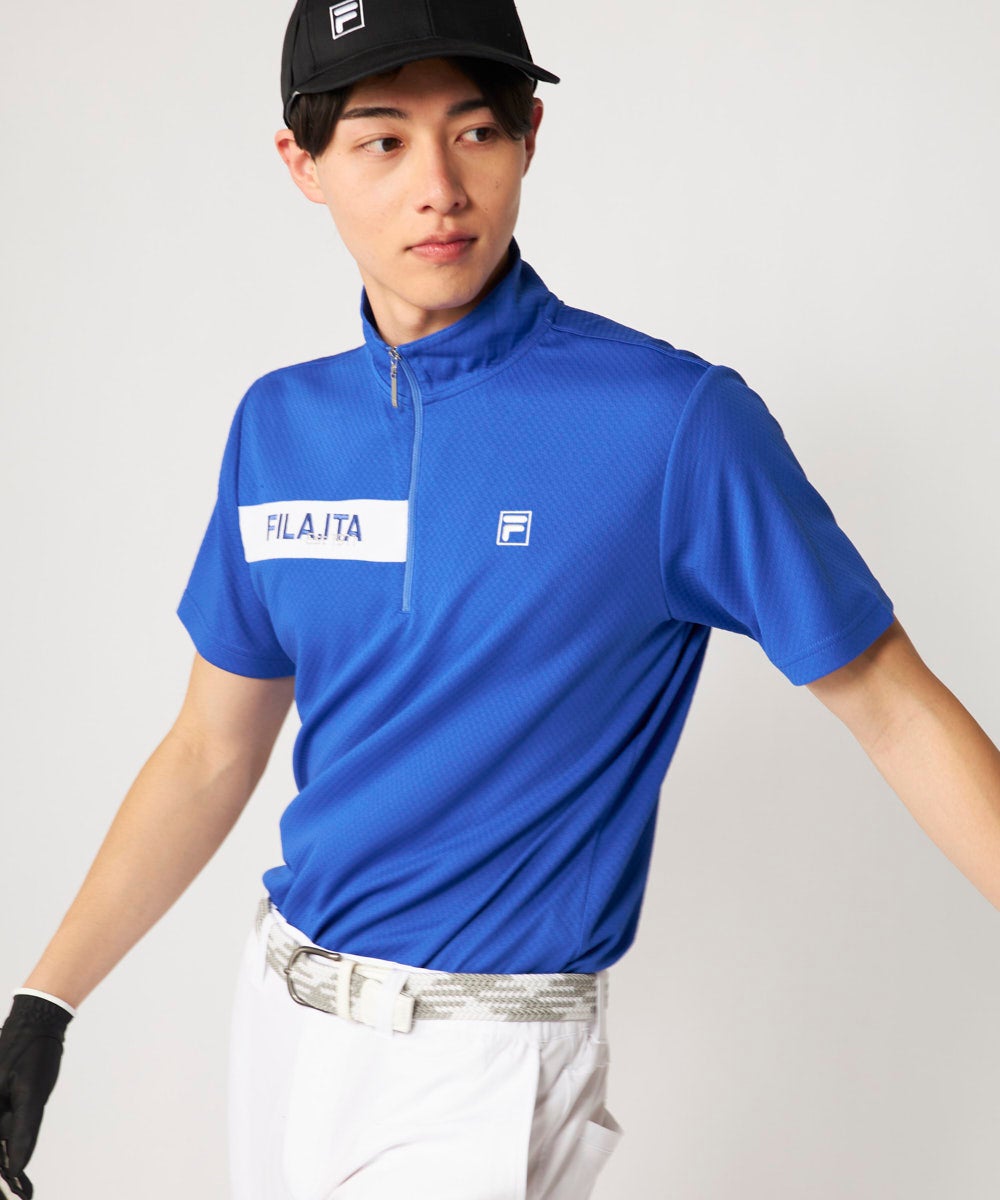 メンズ ハーフジップ半袖シャツ