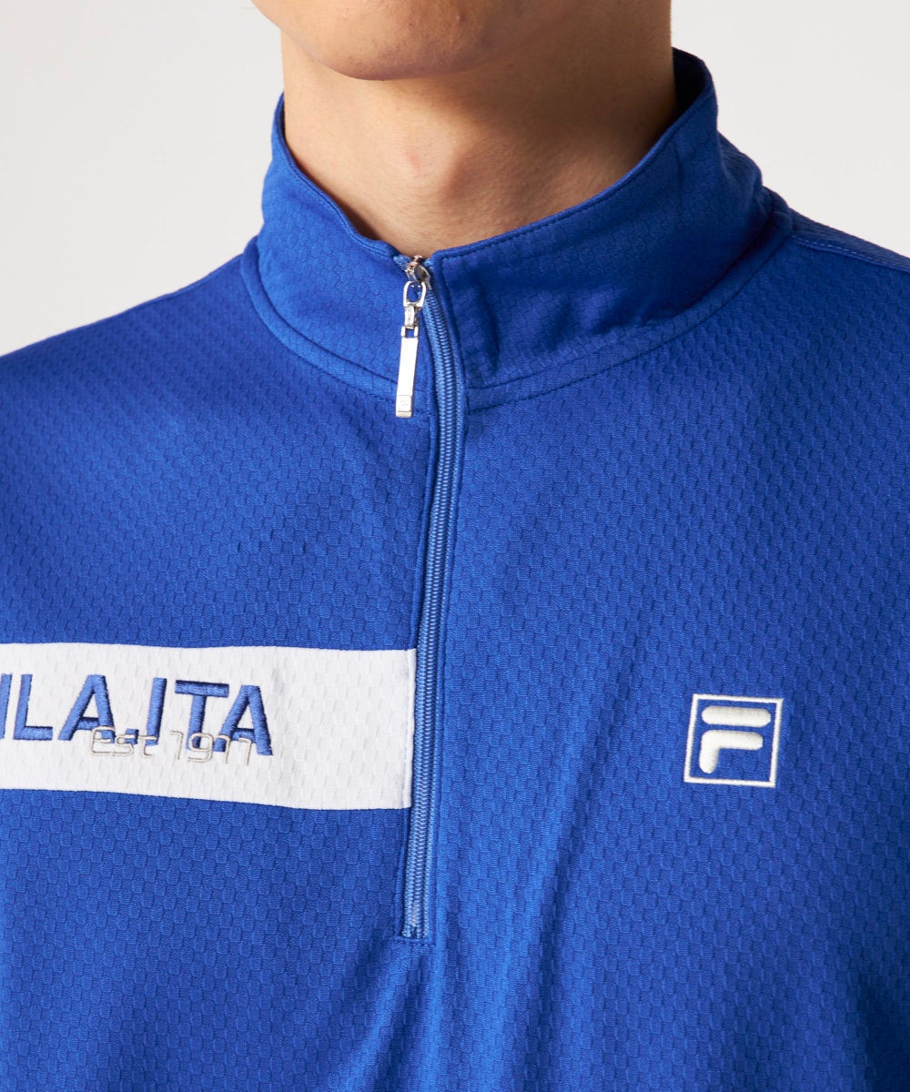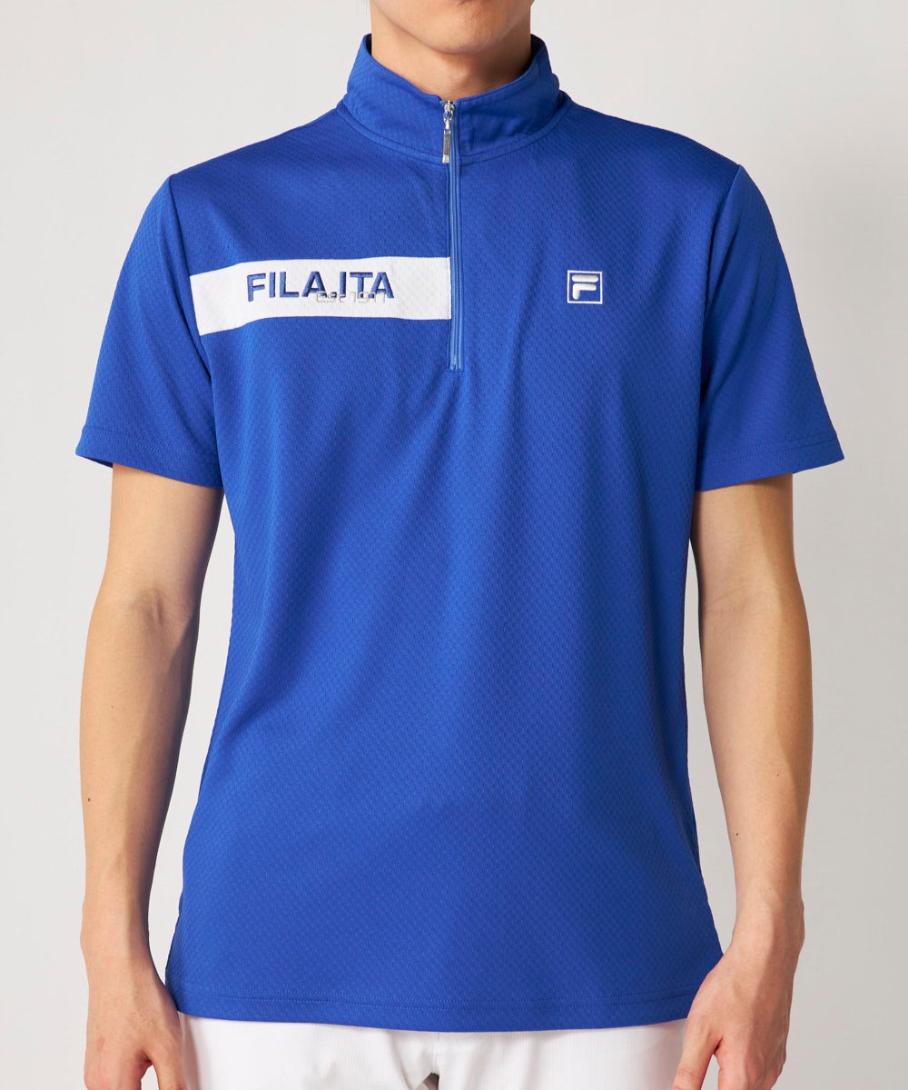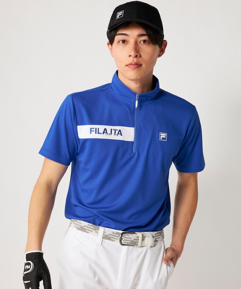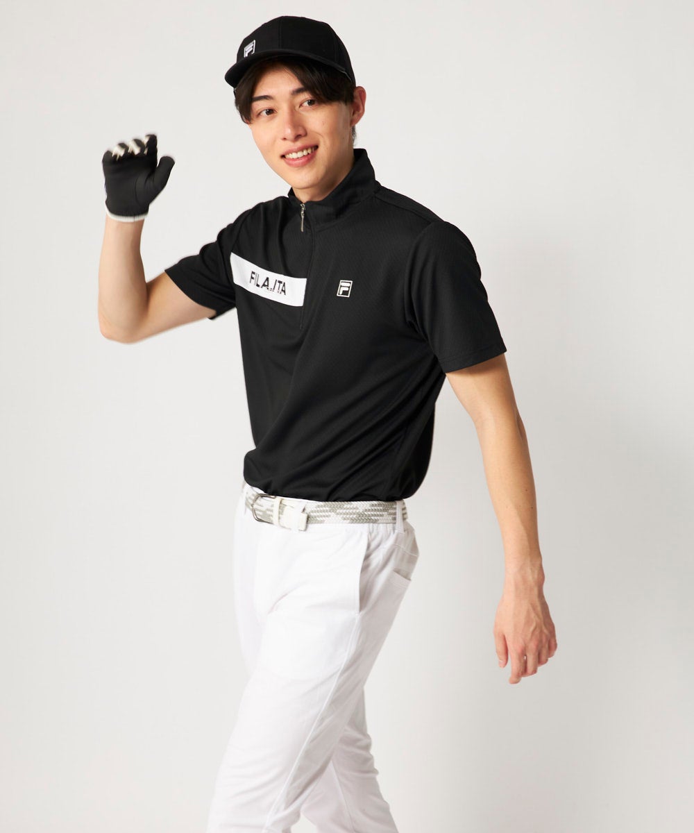 メンズ ハーフジップ半袖シャツ