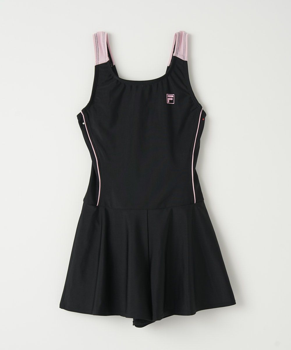 キッズ スクール水着/ブラック×ピンク(キュロットワンピース)
