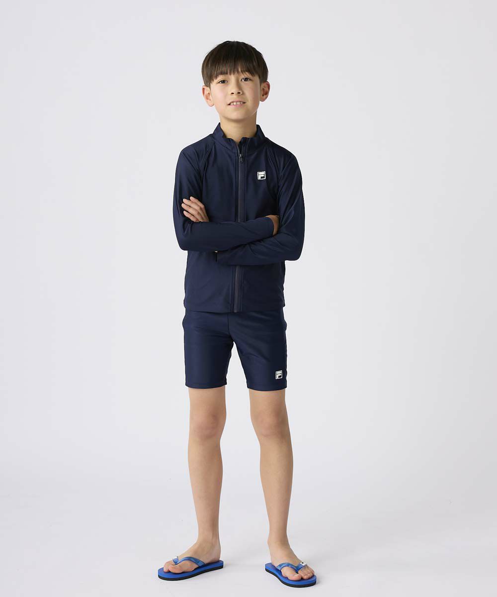 キッズ 長袖フルZIPラッシュガード/ネイビー×ネイビー
