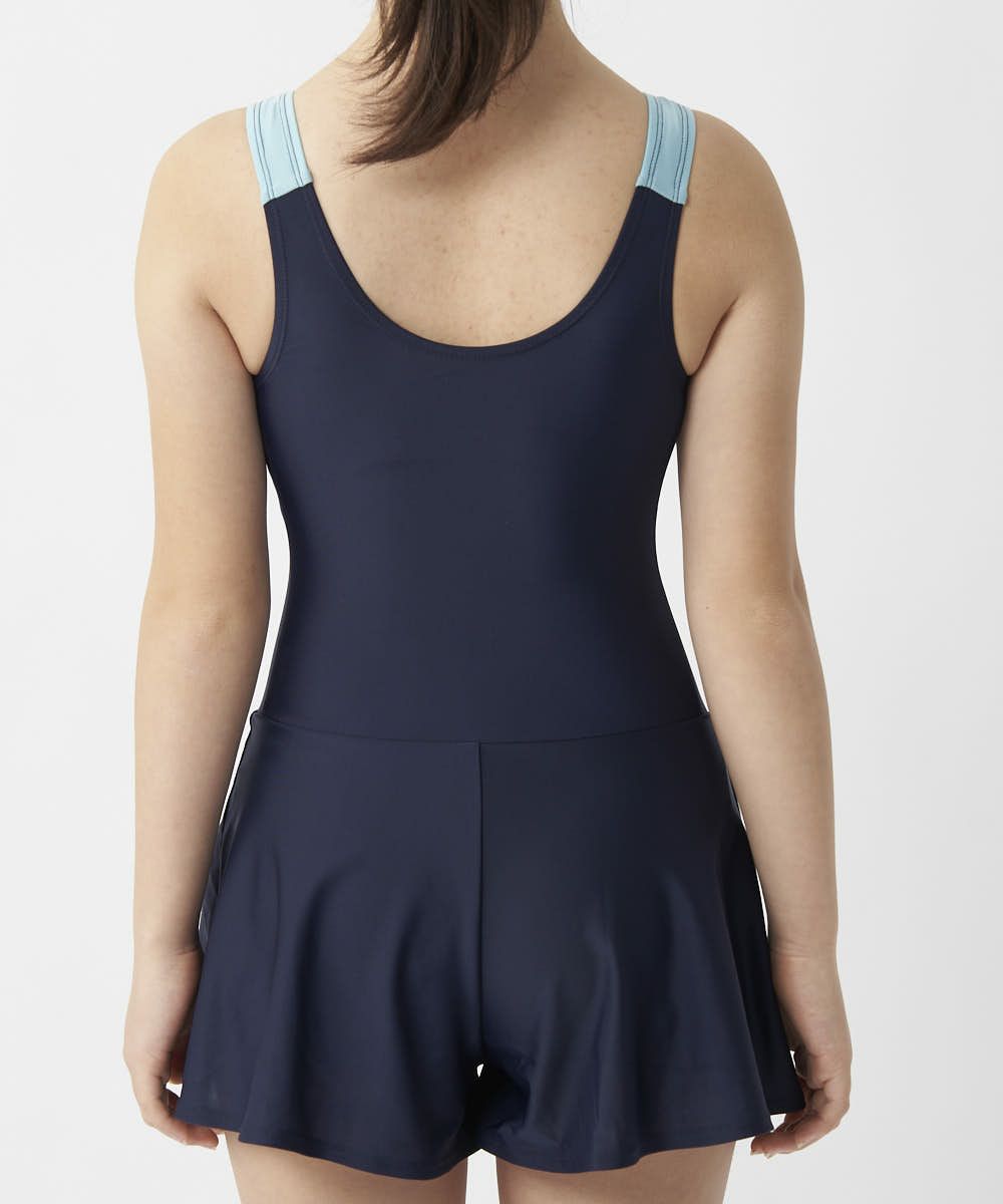 キッズ スクール水着/ネイビー×サックス(キュロットワンピース)