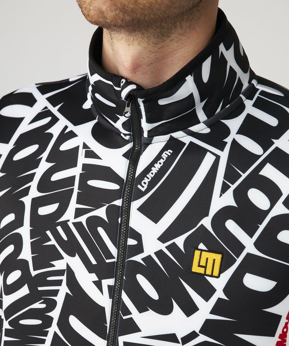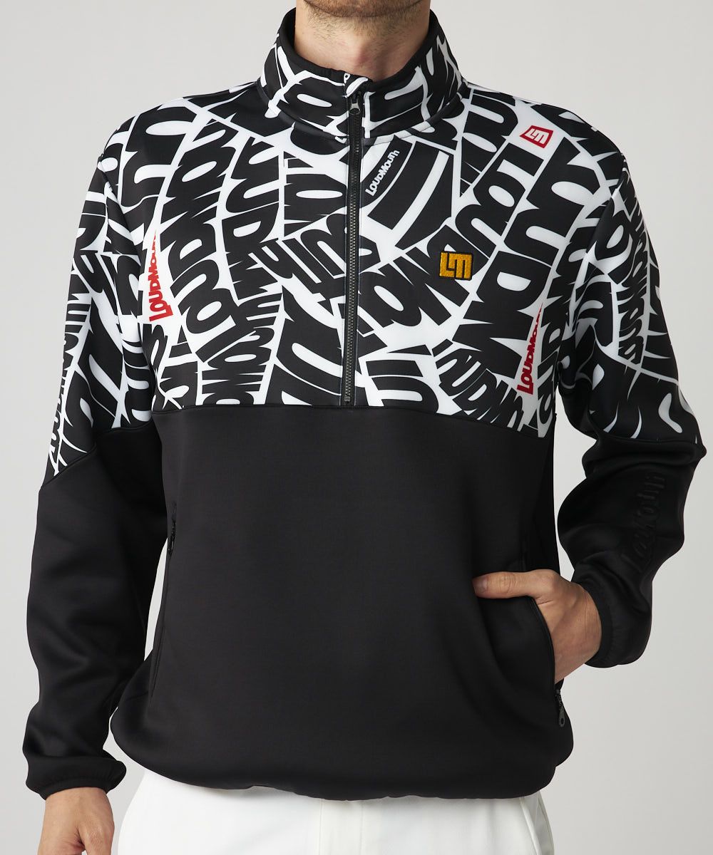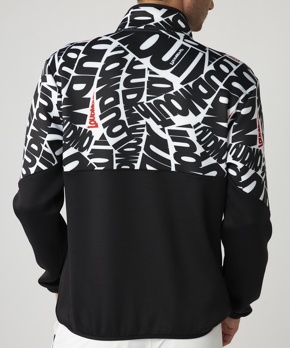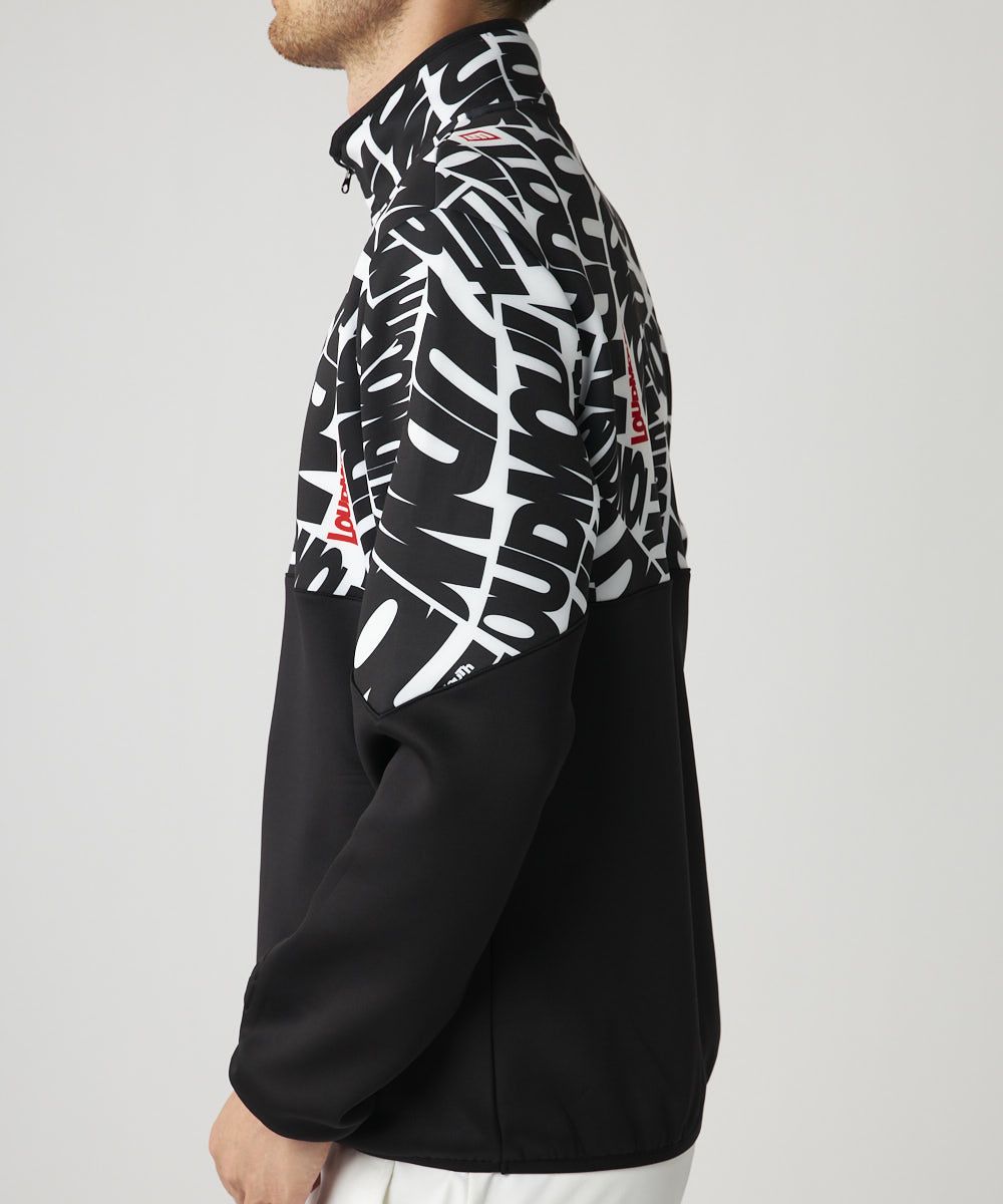 メンズ 軽量ダンボールニット 柄切替ハーフZIPブルゾン ブラック