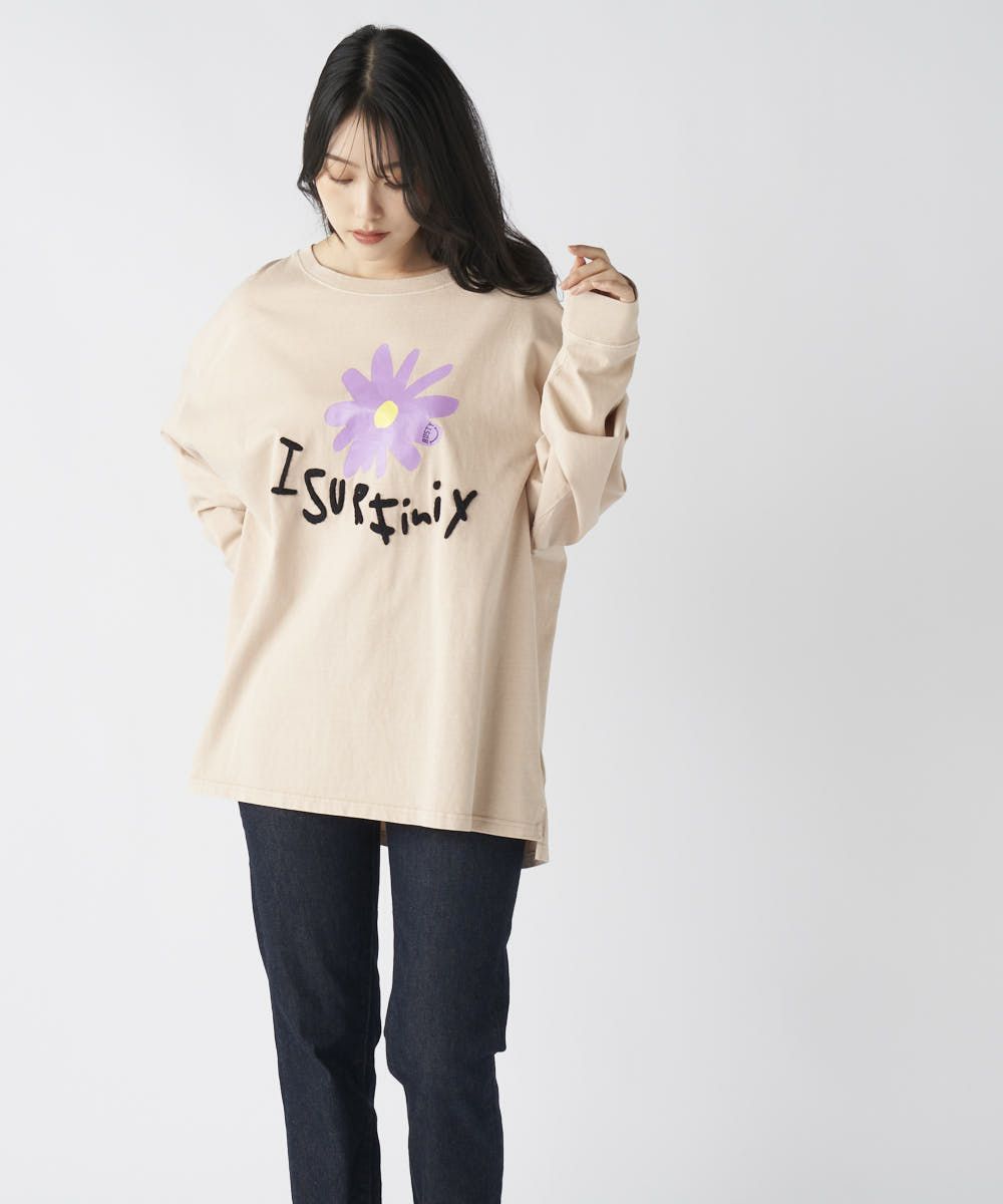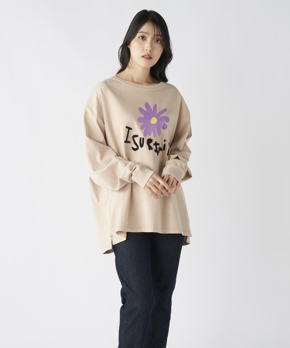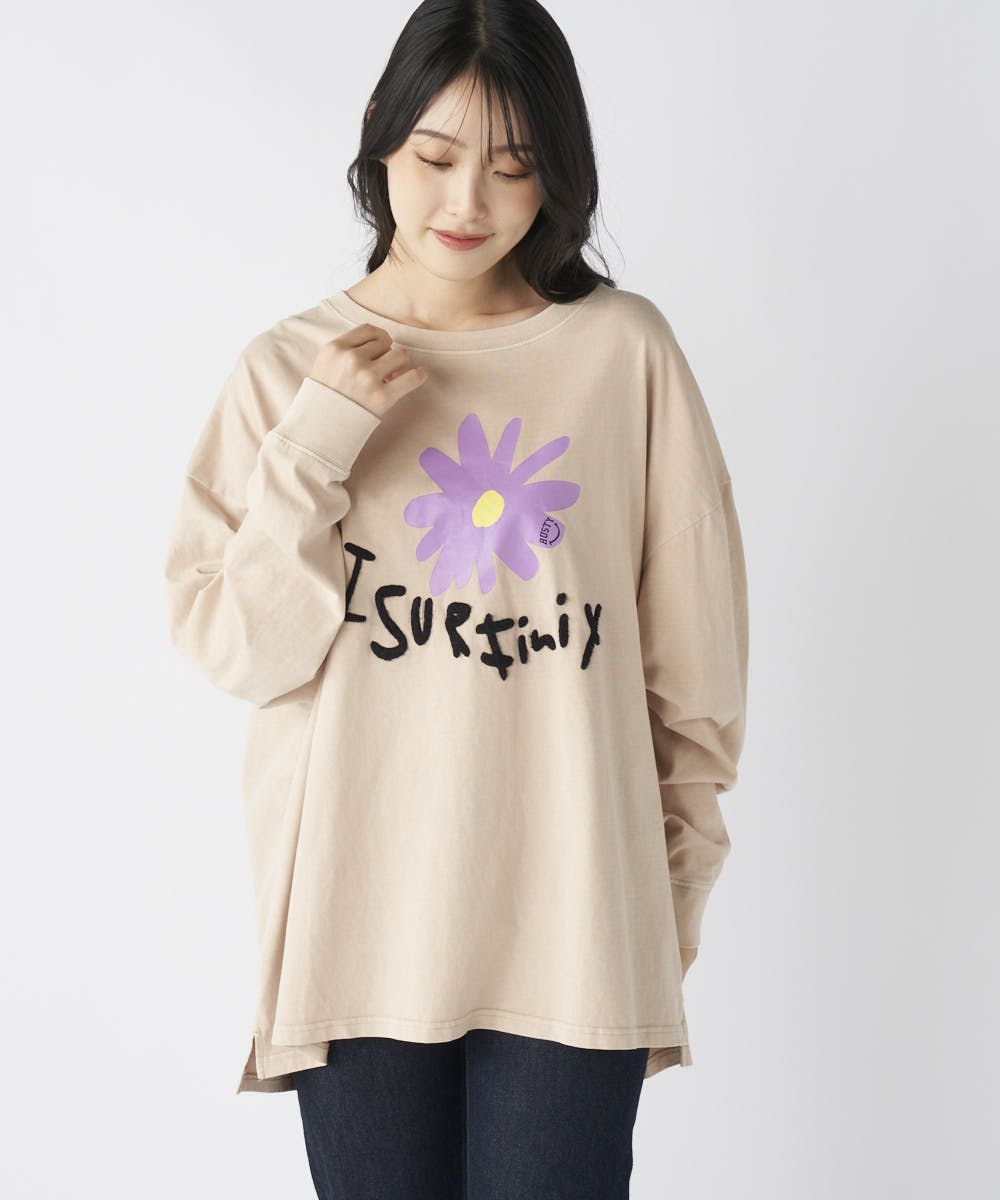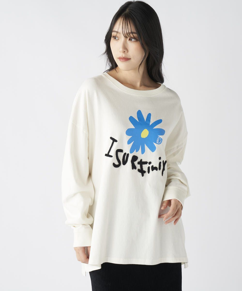 レディース 隠れニコちゃん フラワーモチーフ ロンT