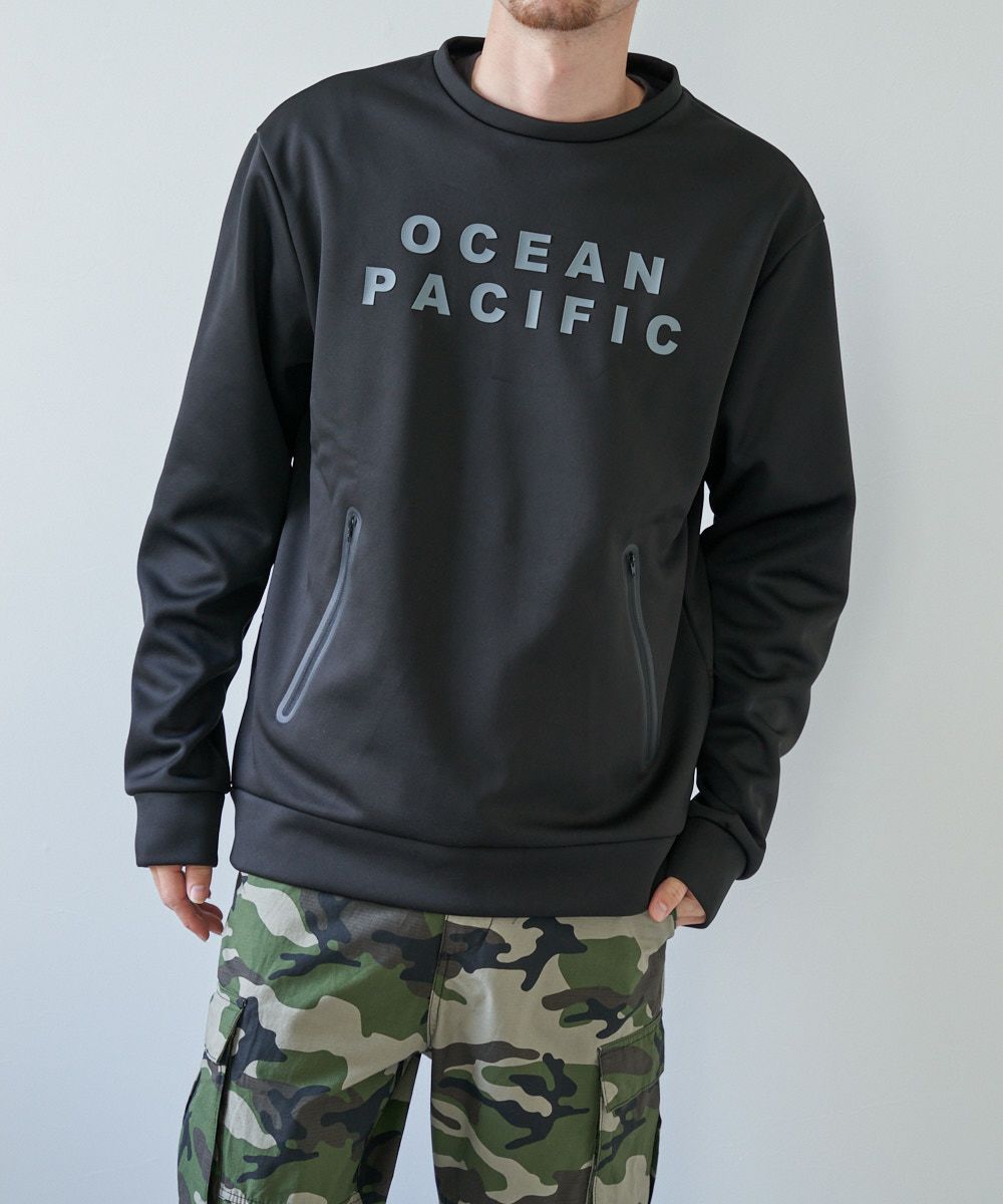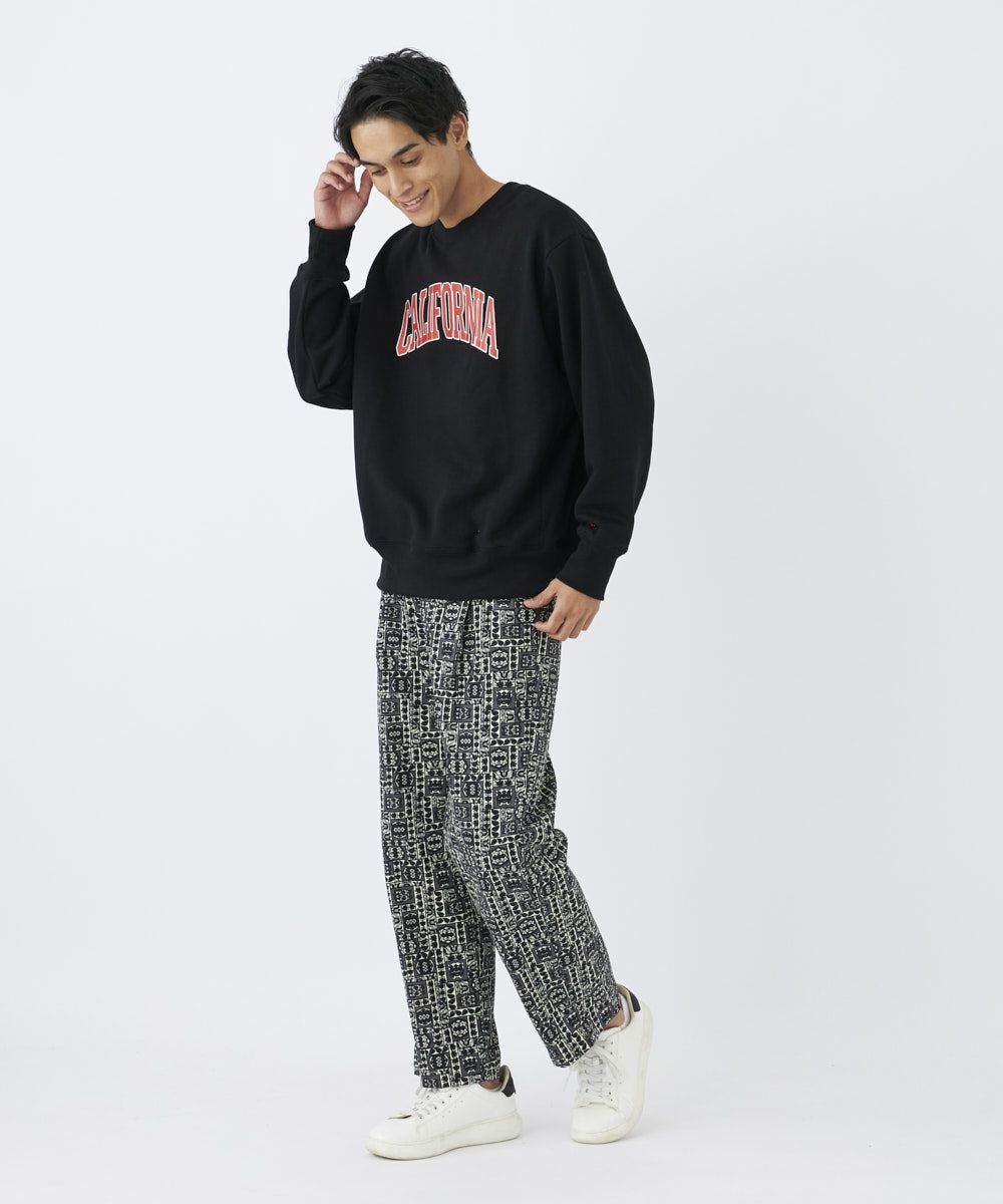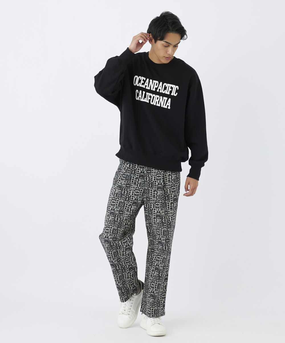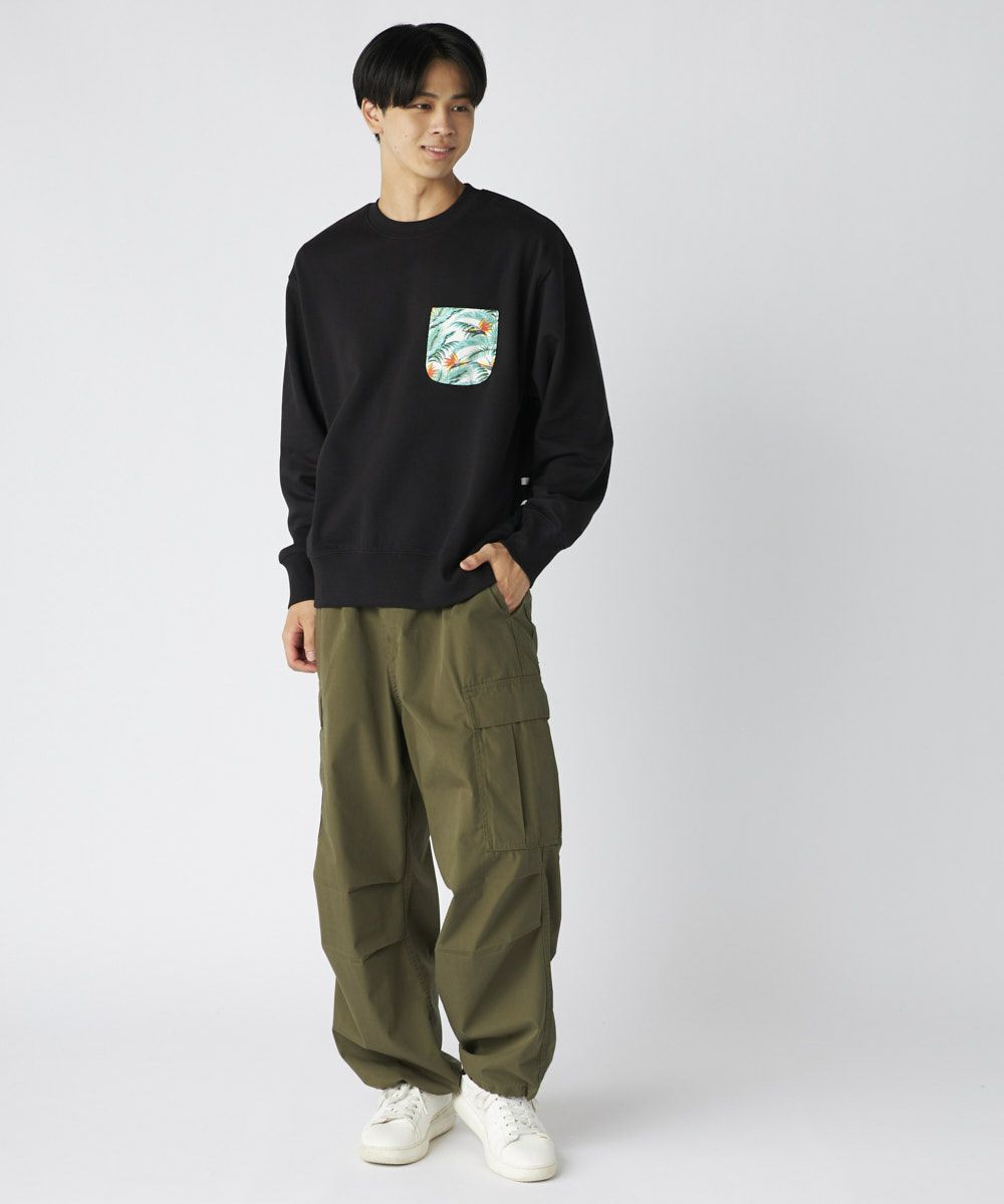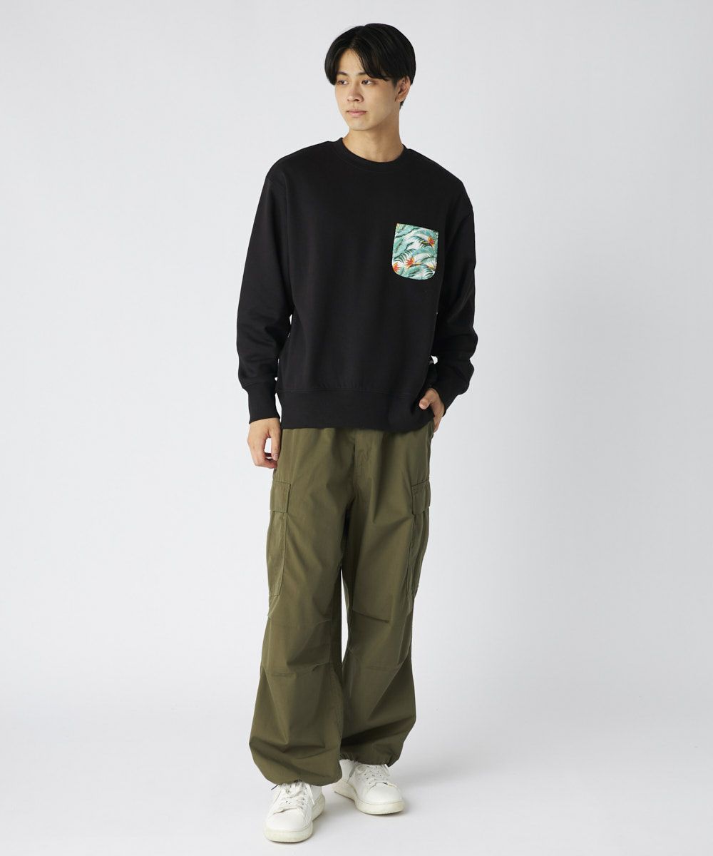 メンズ 総柄胸ポケット付き 裏起毛クルースウェット