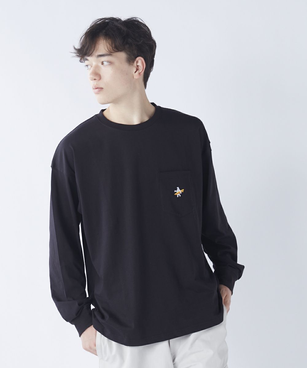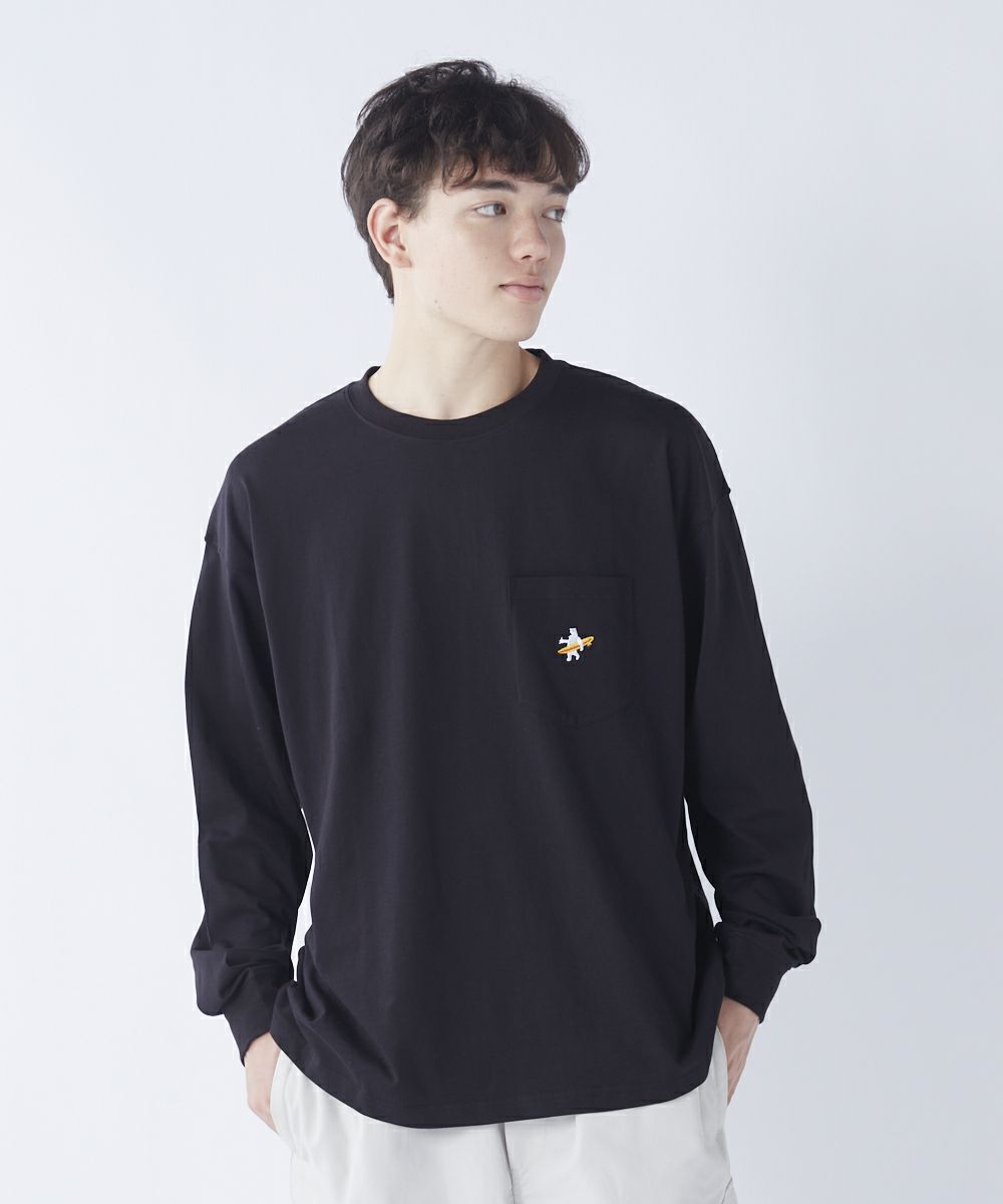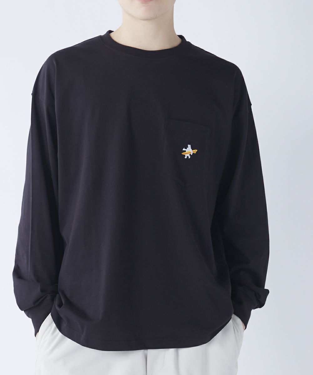 メンズ 胸ポケット ベア刺繍 ロングTシャツ