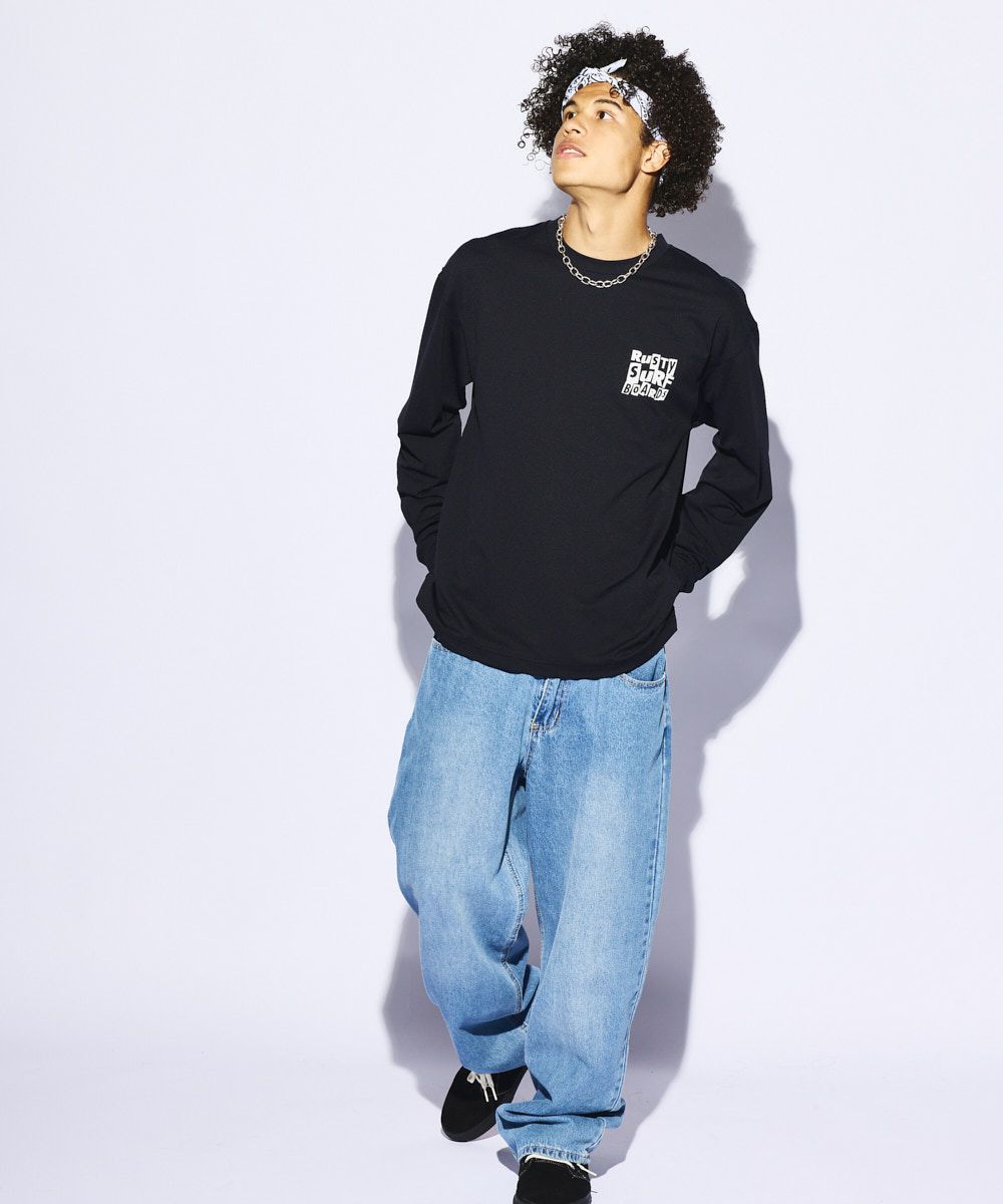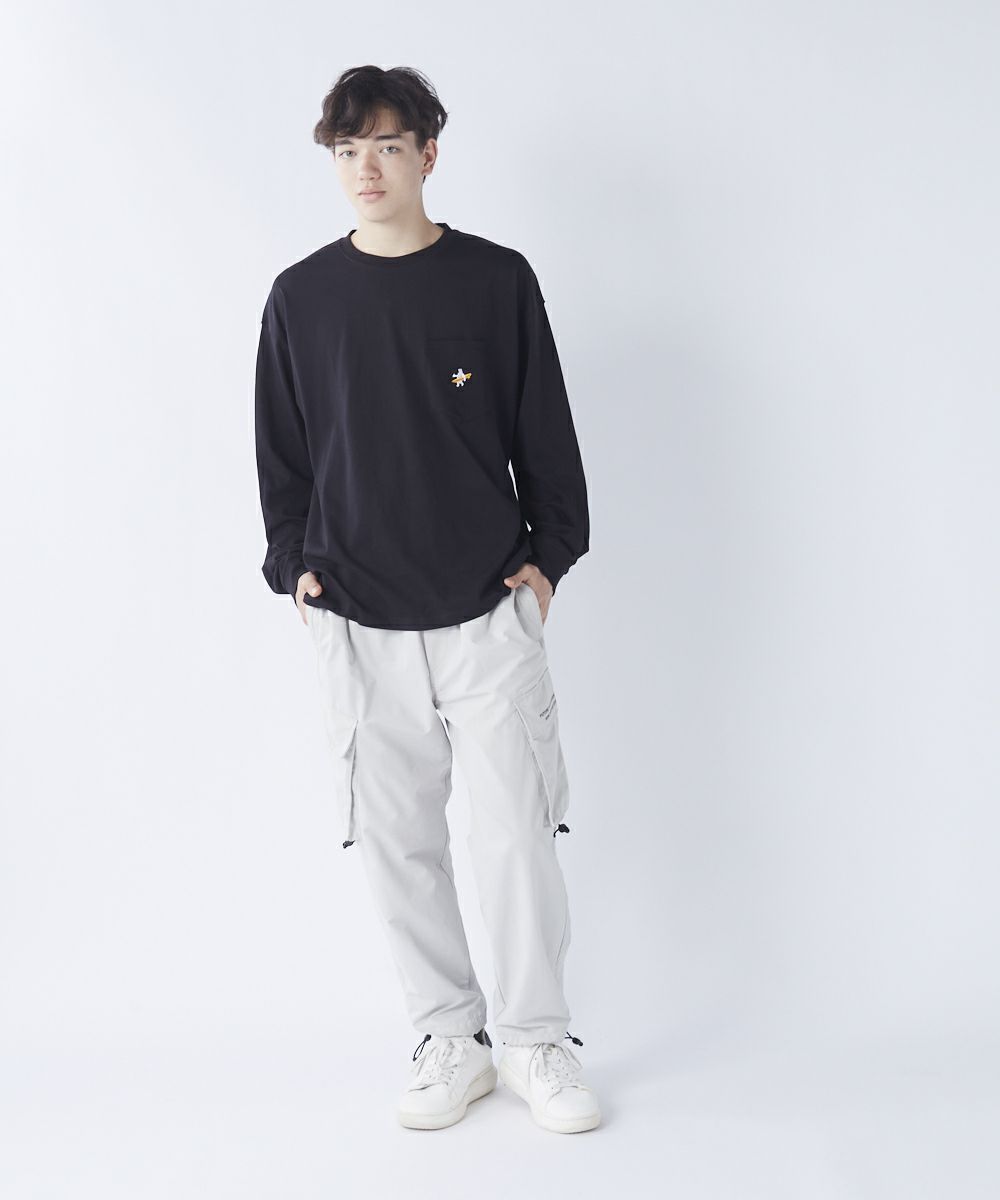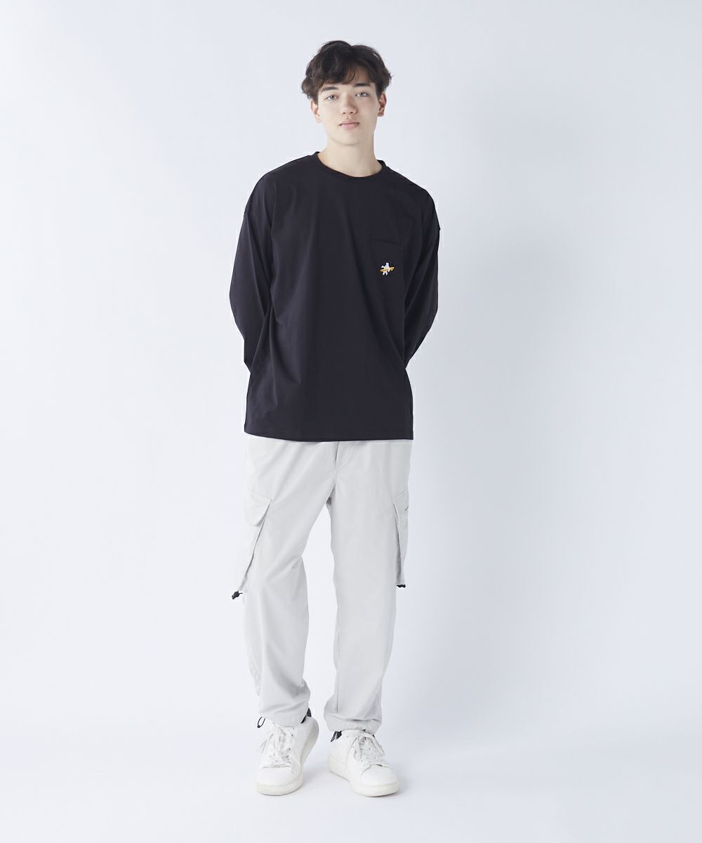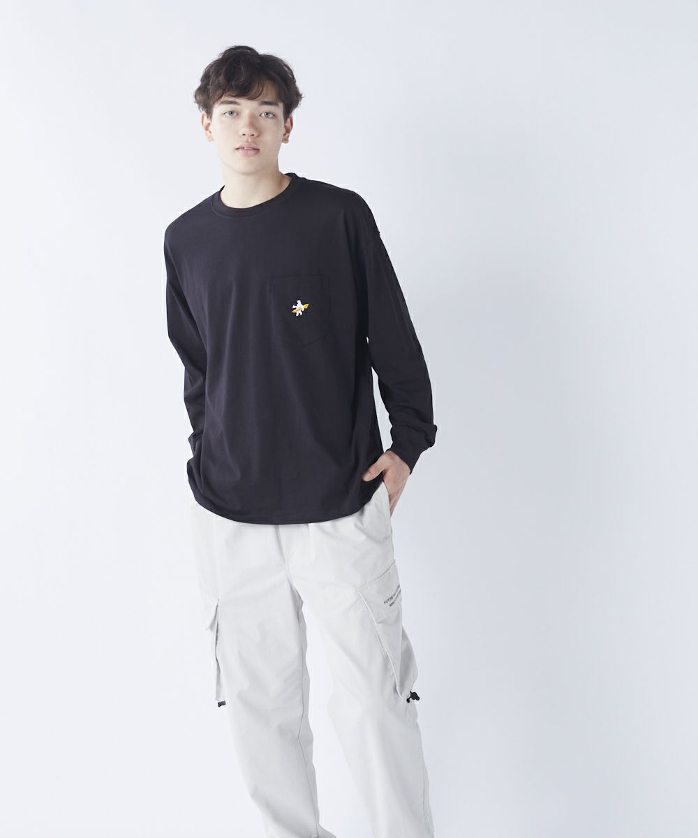 メンズ 胸ポケット ベア刺繍 ロングTシャツ
