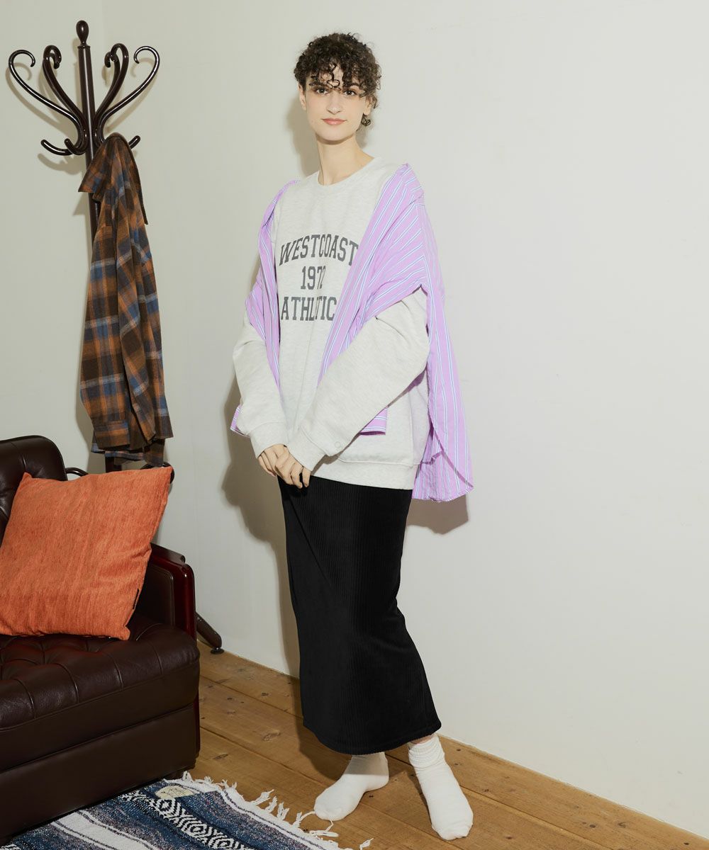 メンズ フロントカレッジロゴ裏起毛クルースウェット