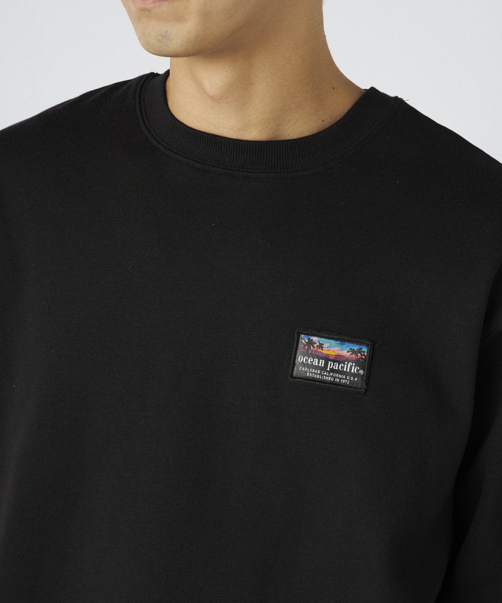 メンズ 胸ワッペン付き 裏起毛クルースウェット